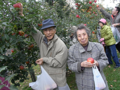 昨日に引き続き、今日もみんなでりんご狩りに出かけました。