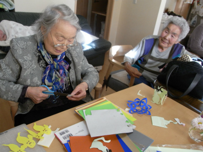 ラウンジに戻ってからは、切り絵に挑戦されたみなさん。