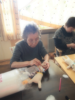 みんなでおしゃべりしながら、ちくちくと・・・