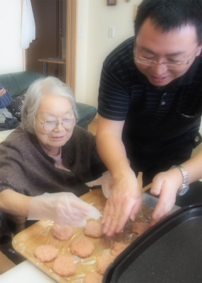 今日のお昼ごはんは、みんなで餃子を手作りすることに。
