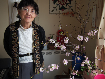 ラウンジに飾っている桜も、そろそろ見ごろでしょうか?