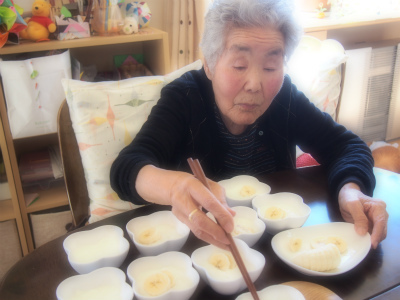 今日の三時のおやつは、みんなで『くるみ餅』を作ることにしましたよ♪