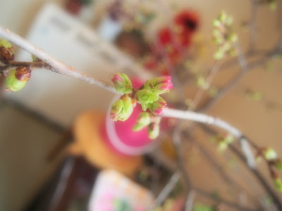 ぽかぽか陽気に誘われて、ラウンジの桜もつぼみが開いてきました。