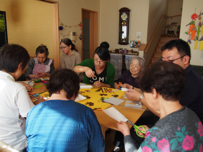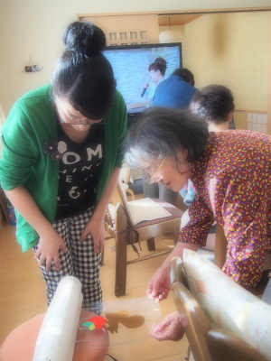 ラウンジに飾る壁画の続きにも取り組まれたみなさん・・・