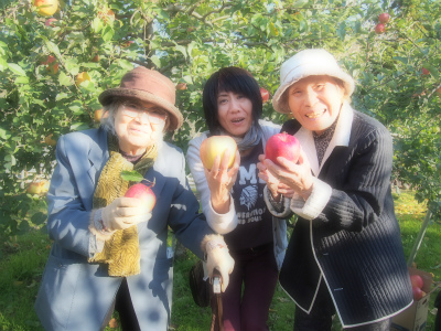 雨の心配がありましたが、りんご園に到着すると今回もお天気が回復しましたよ!!
