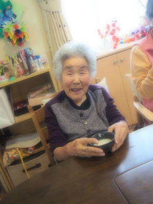 まずは、所長のこばさん特製の甘酒で温まっていただいて・・・