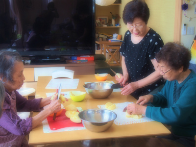 みんなでわいわい、にぎやかなおやつ作りがスタートです!