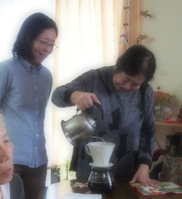 三時のおやつのコーヒーは、お客様が淹れてくださいました。