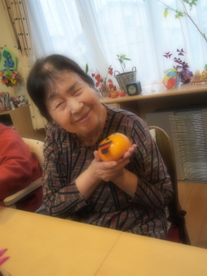 今日は『ハロウィン!!』ということで、頂き物の立派な柿でこんなものを作ってみましたよ。