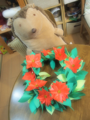 クリスマスのリースの続きに挑戦されたみなさん、いよいよ仕上げの作業に入りましたよ♪