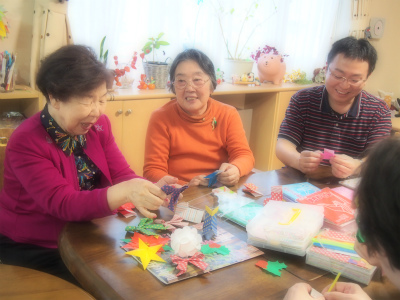 素敵な仕上がりに大満足のみなさん、さっそくラウンジに飾りましょうね♪