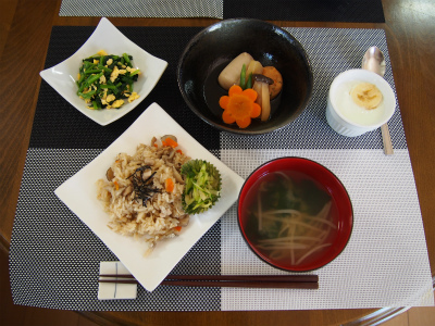 ★きのこのおこわ ガリと胡瓜の和え物添え