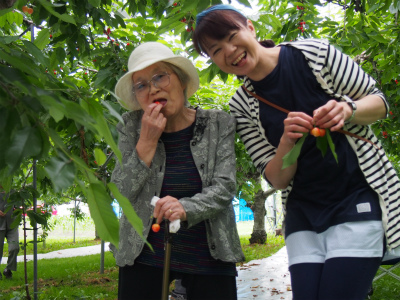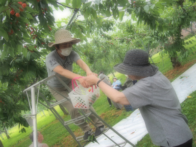 おいしいさくらんぼを満喫されるみなさん・・・