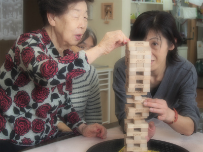 木目調のジェンガにチャレンジ中 ♪