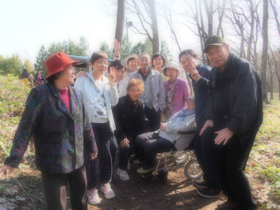沢山のカタクリをバックに・・・