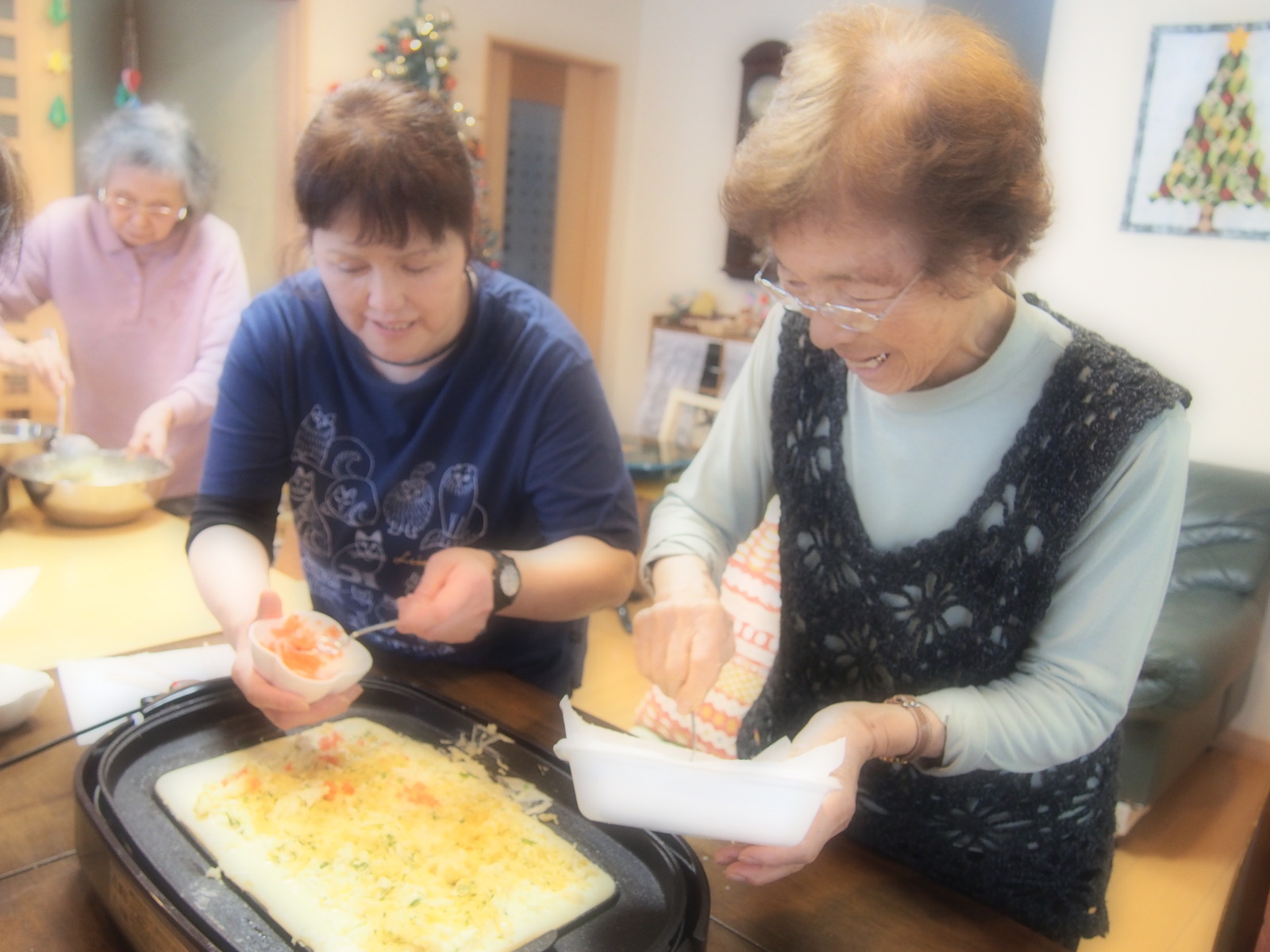今日の三時のおやつは、ホットプレートでたこ焼きをしましたよ♪