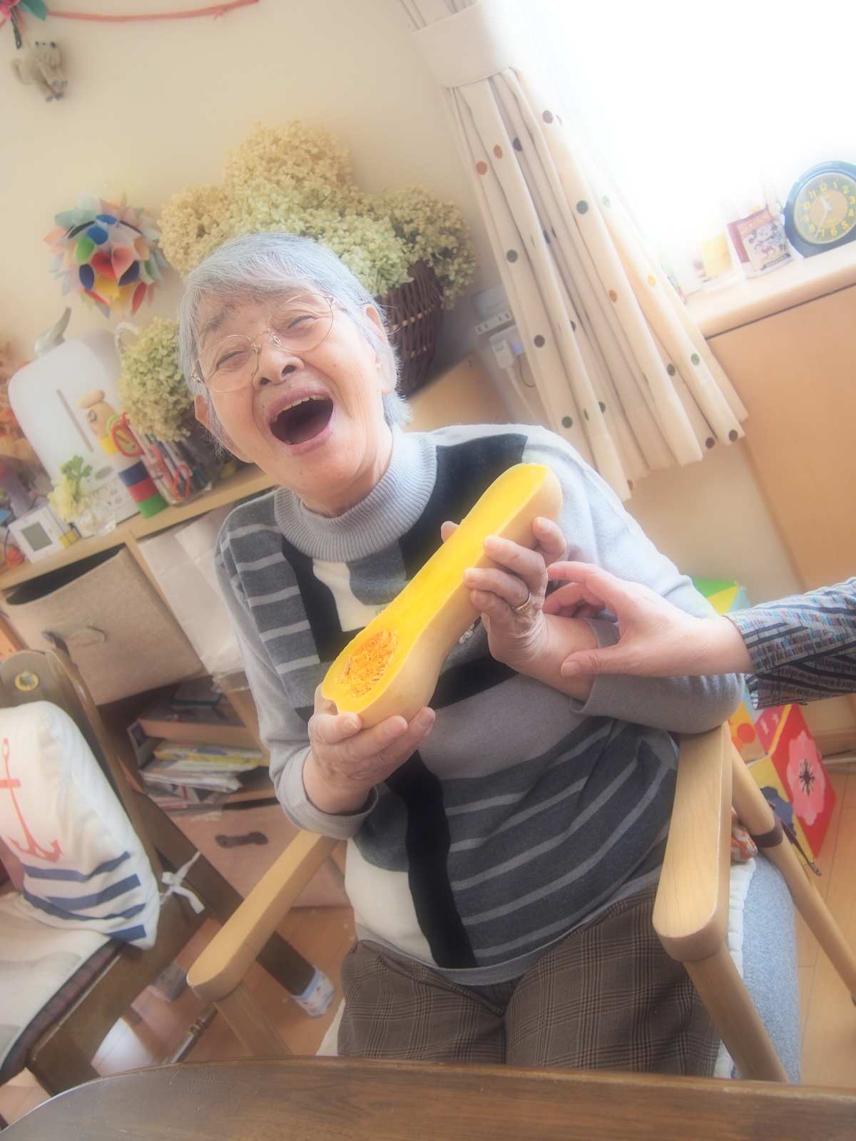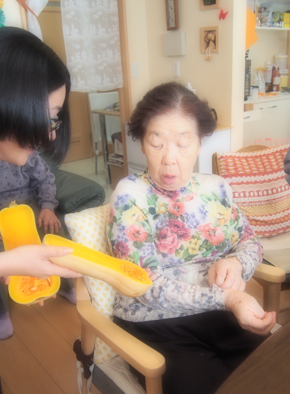 大きな南瓜にびっくり!!お昼ごはんに頂きましょうね♪