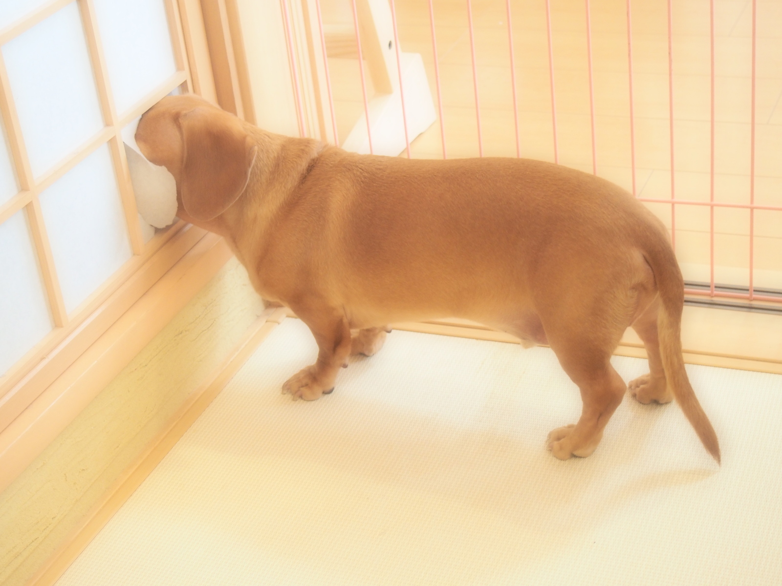 みなさんが帰ってしまい、寂しいスタッフ犬・けんちゃん・・・玄関を確認中です(笑)
