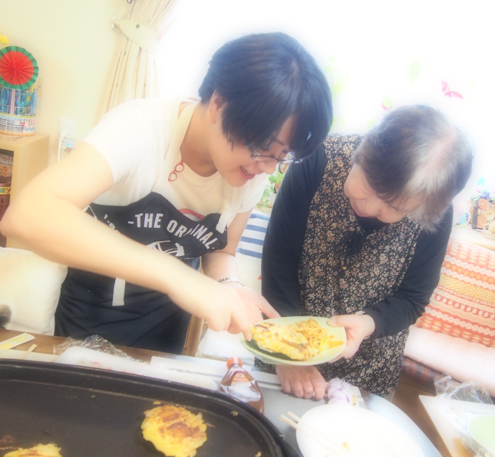 今日のお昼は、ホットプレートでたこ焼き&お好み焼きをしましたよ♪