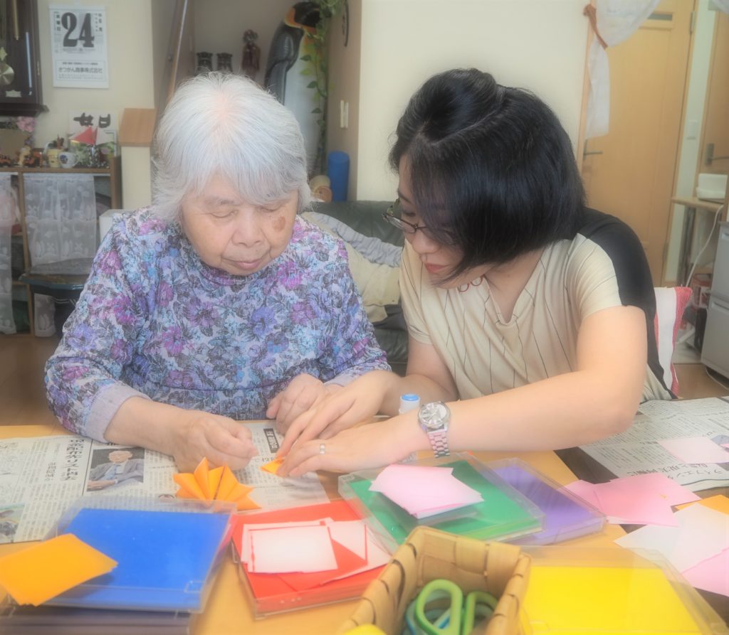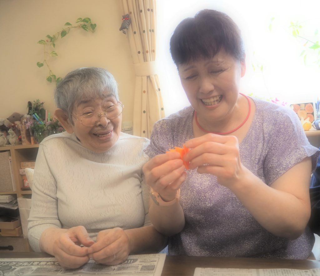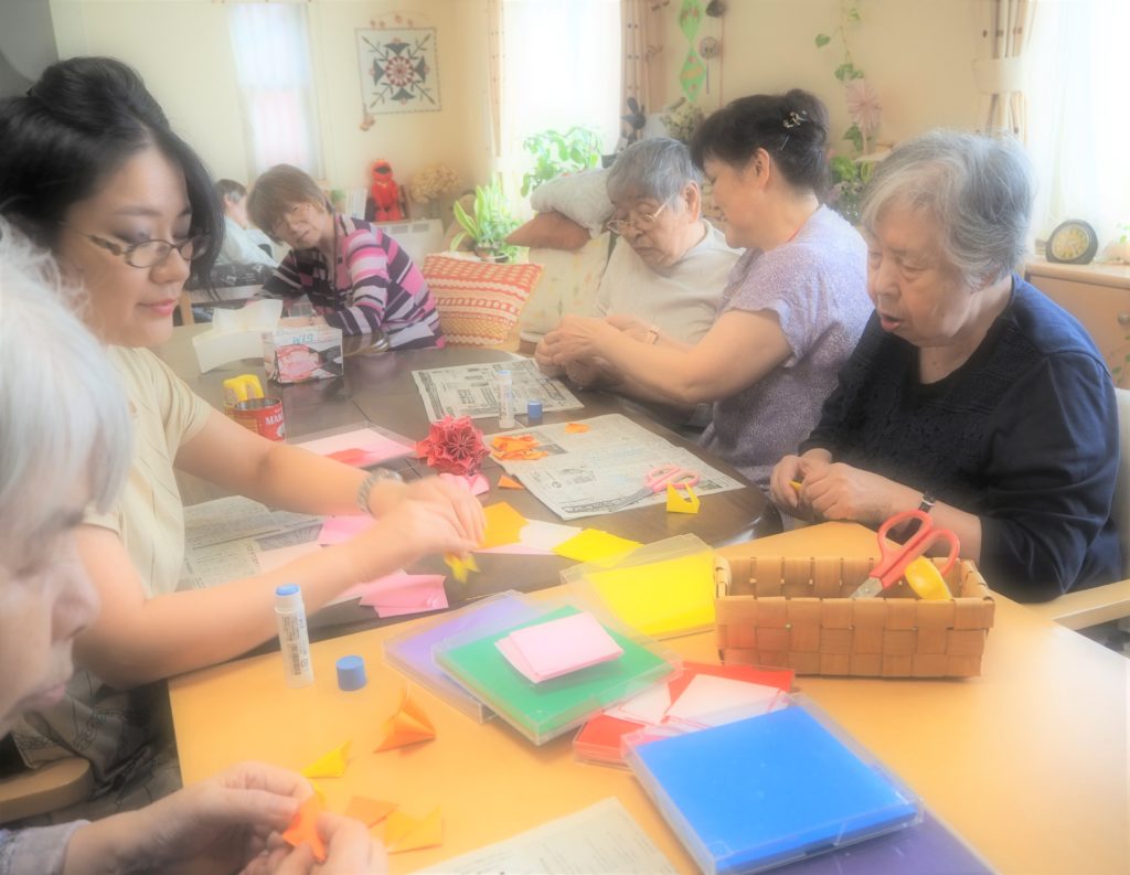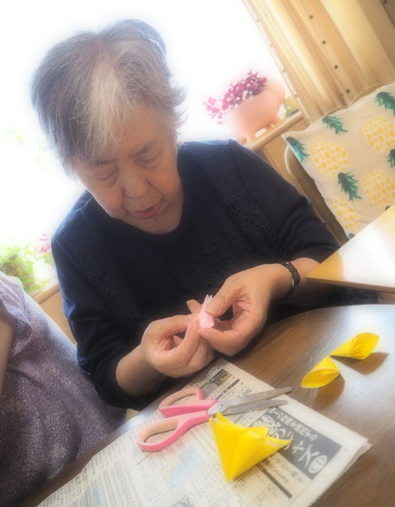 今日は久しぶりに折り紙のくす玉作りに挑戦されたみなさん。