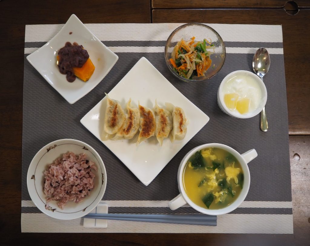 今日のお昼ごはんは、ホットプレートで餃子を焼くことにしました♪