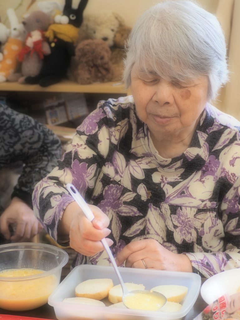 パンに卵液をしっかりしみ込ませて・・・