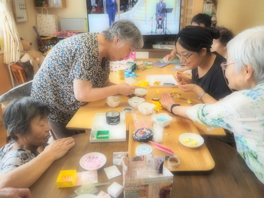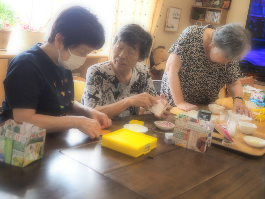 七夕飾り作りの仕上げにつけるパーツを作成中です