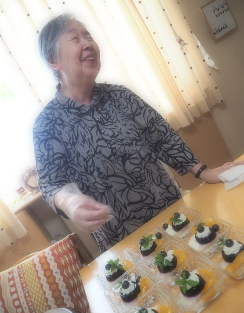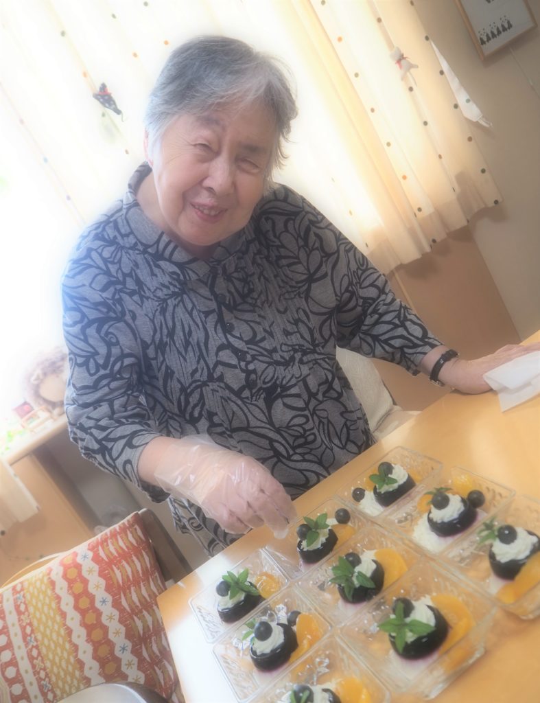 三時のお茶請けは、手作りの2色ゼリー(山葡萄&杏仁)でした♪