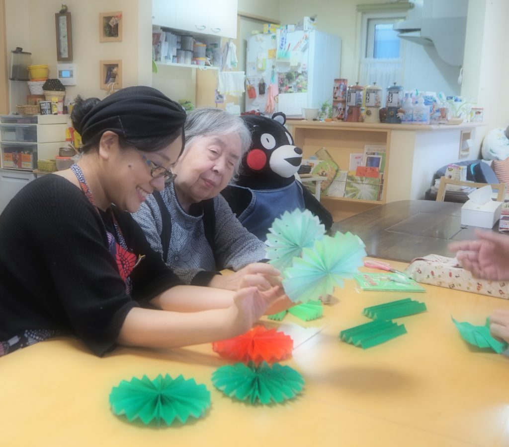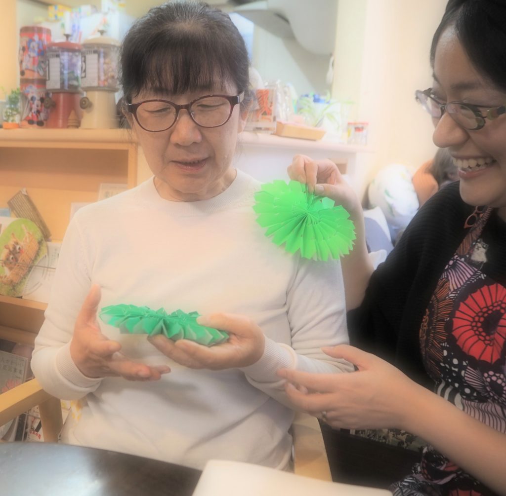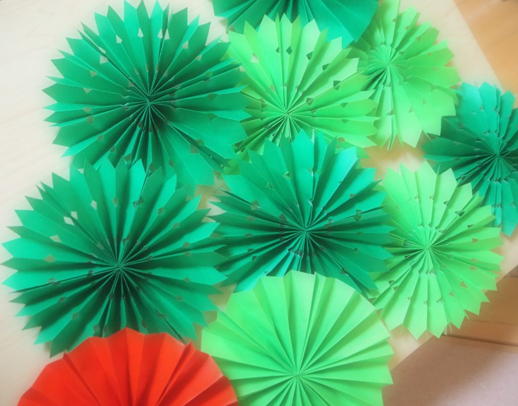 クリスマスカラーのペーパーファンを作りましょう!!