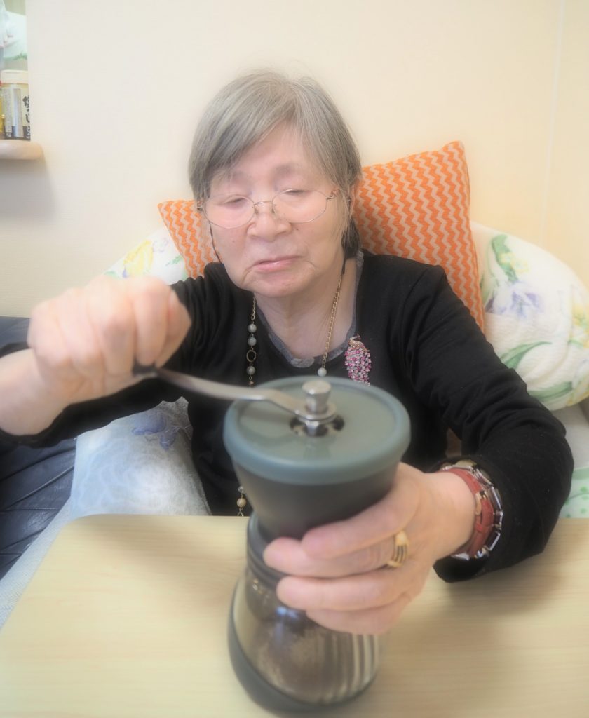 三時のコーヒーは、お客様が挽いて下さいました!!