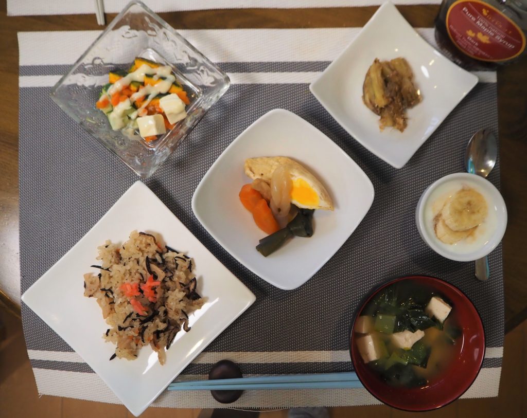 ★五目ごはん お味噌汁(小松菜・豆腐・小揚げ)