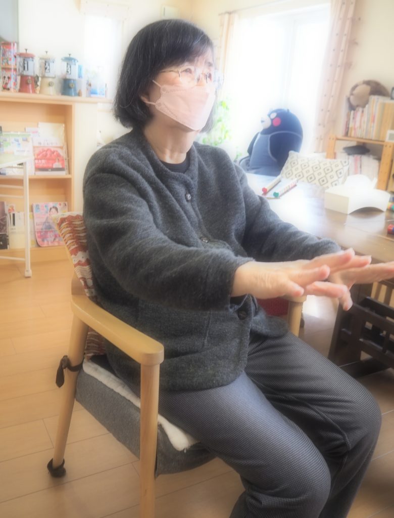 上手にひっくり返せる様、イメージトレーニング中のお客様・・・