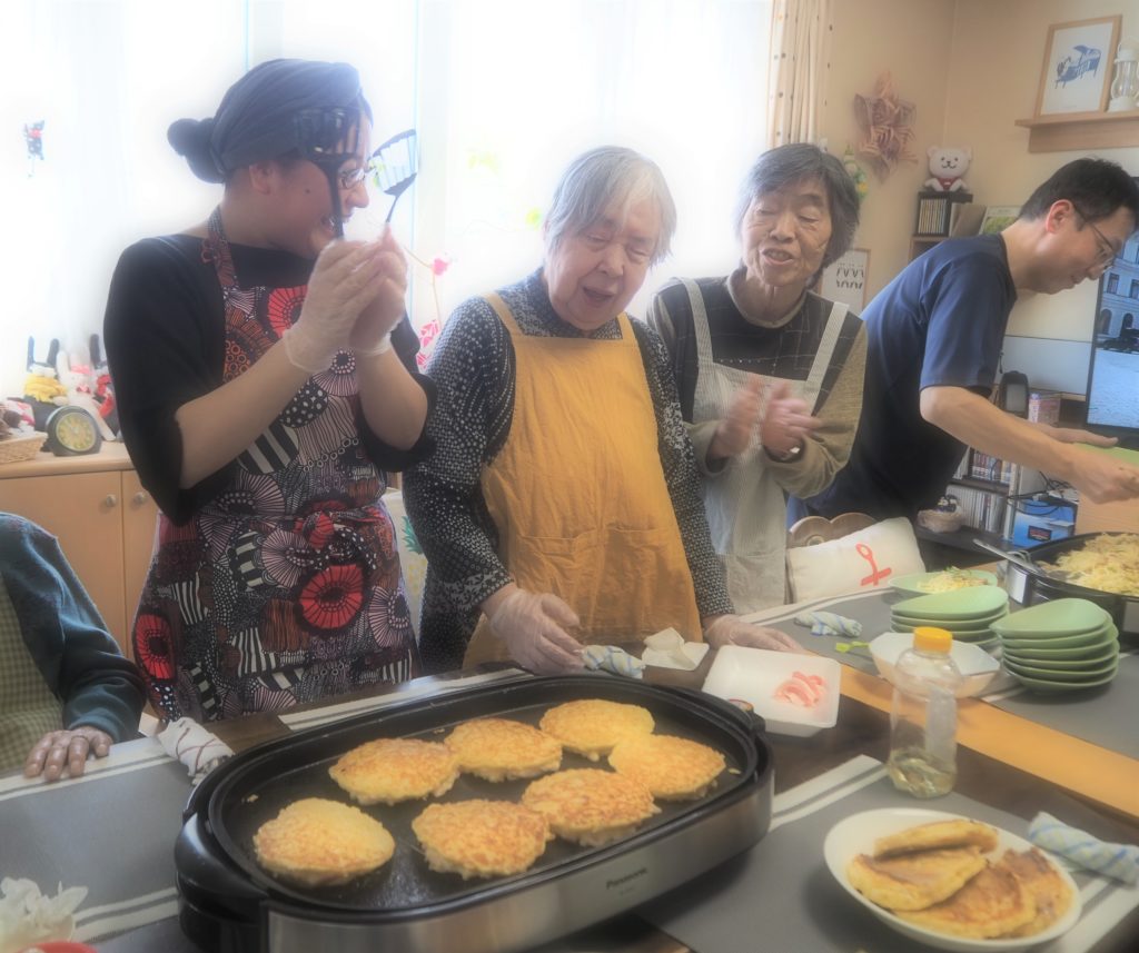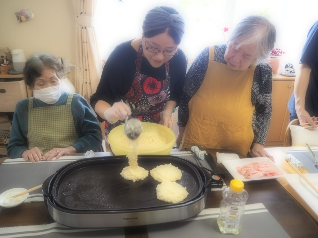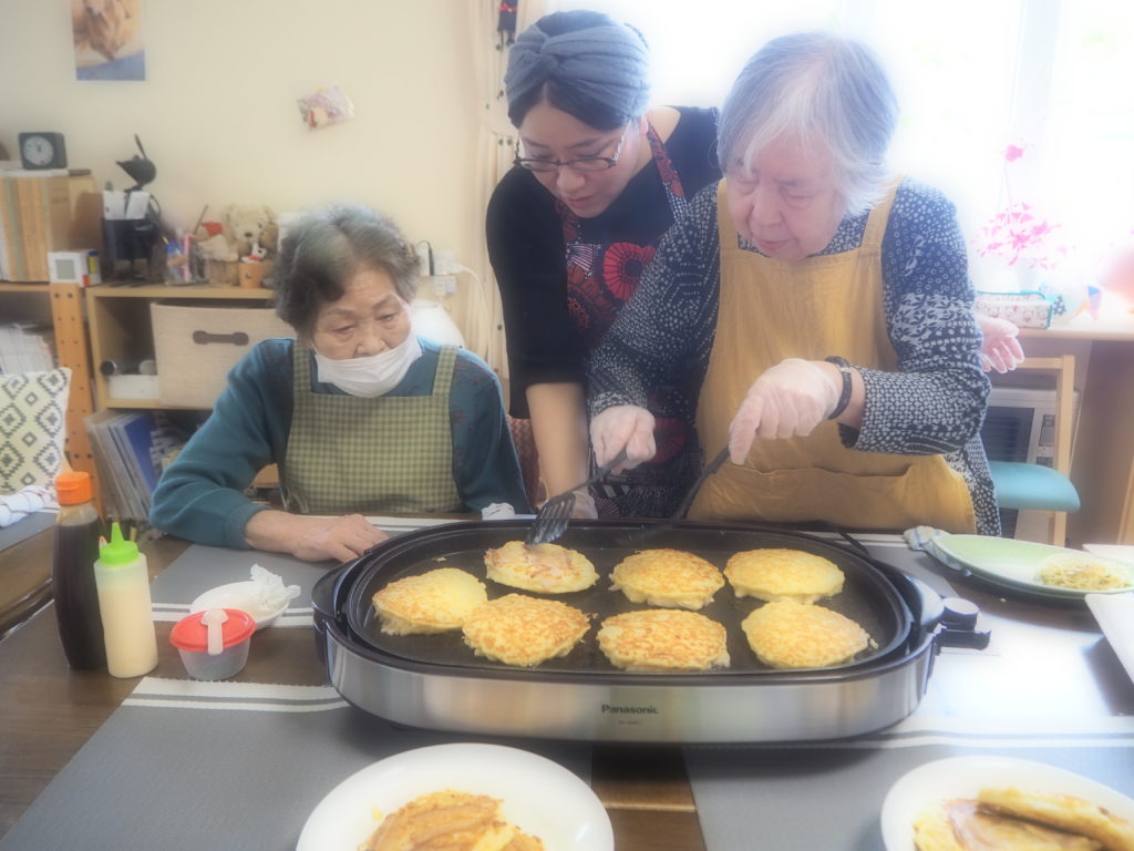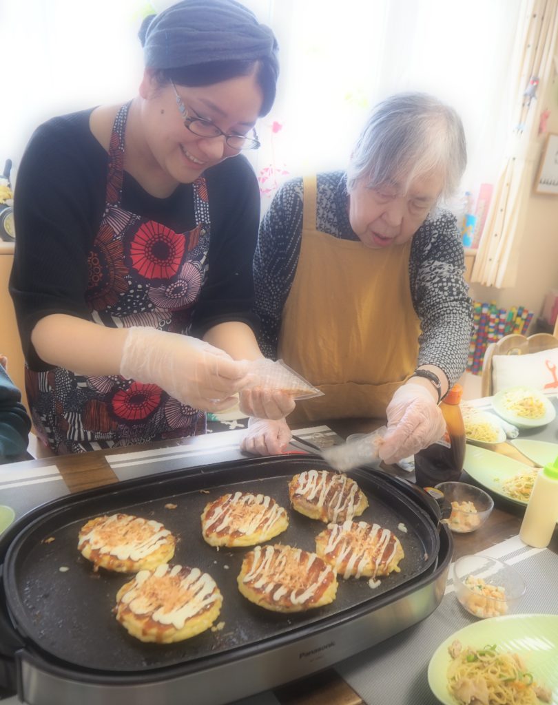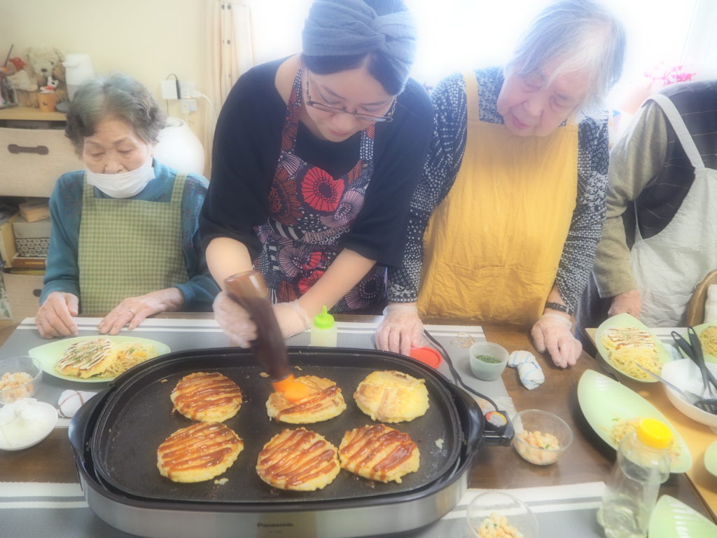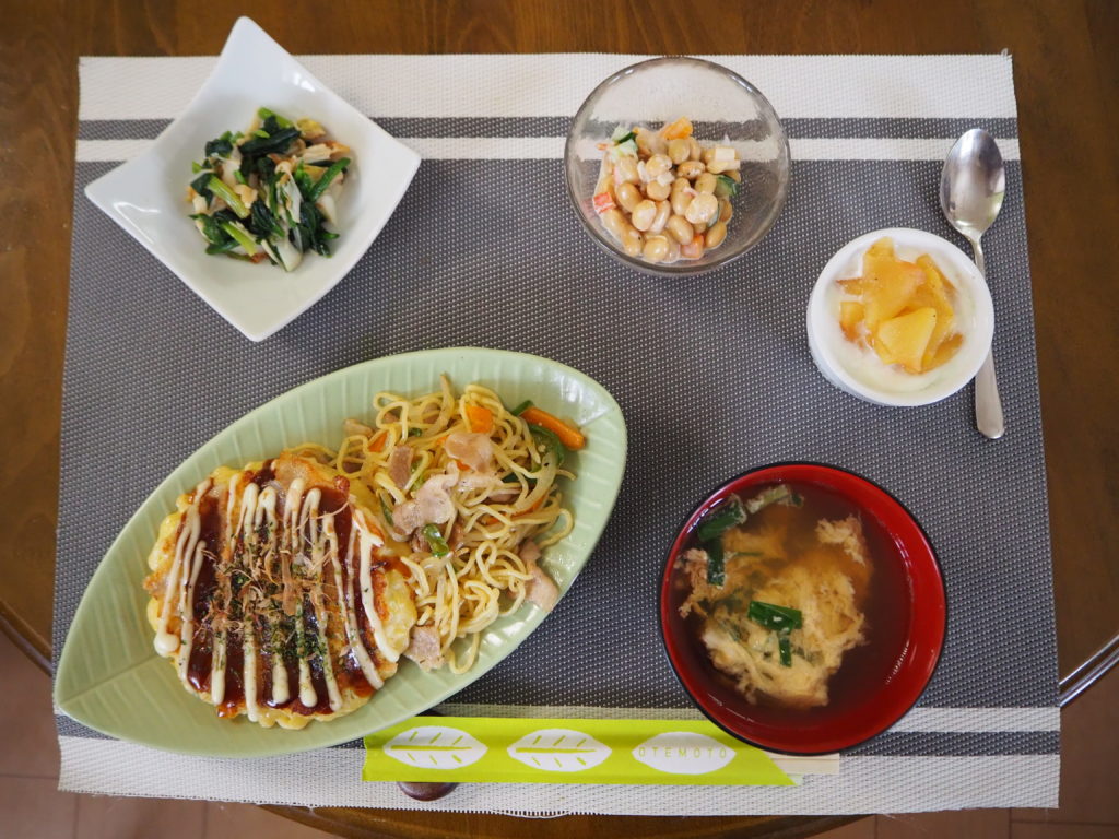 今日のお昼ごはんは、ホットプレートで焼きそば&お好み焼きをしましたよ♪
