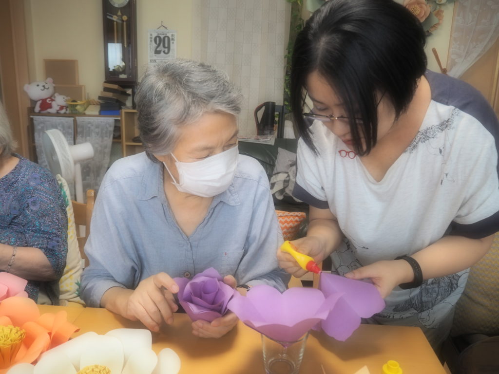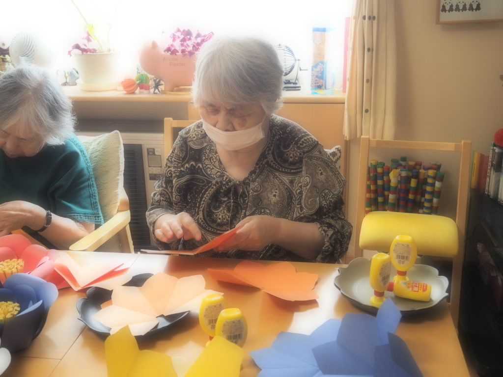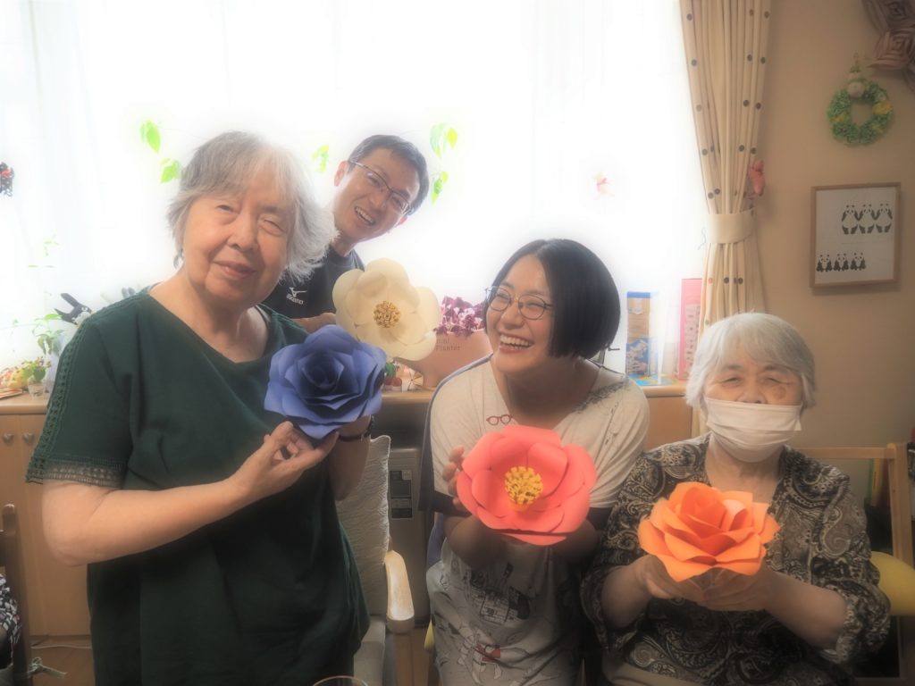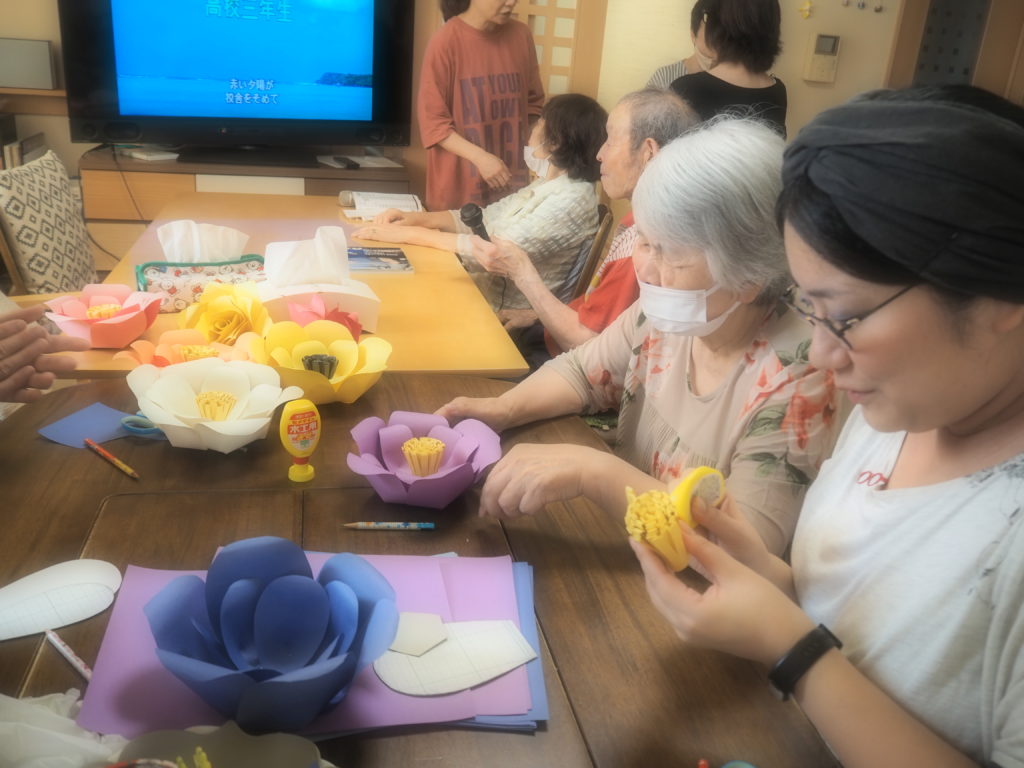 今日は、みなさんと一緒にペーパーフラワーを作りましたよ♪