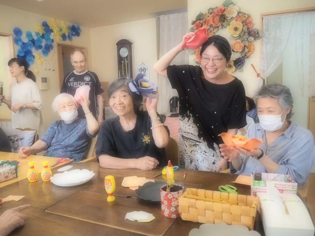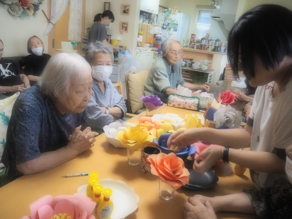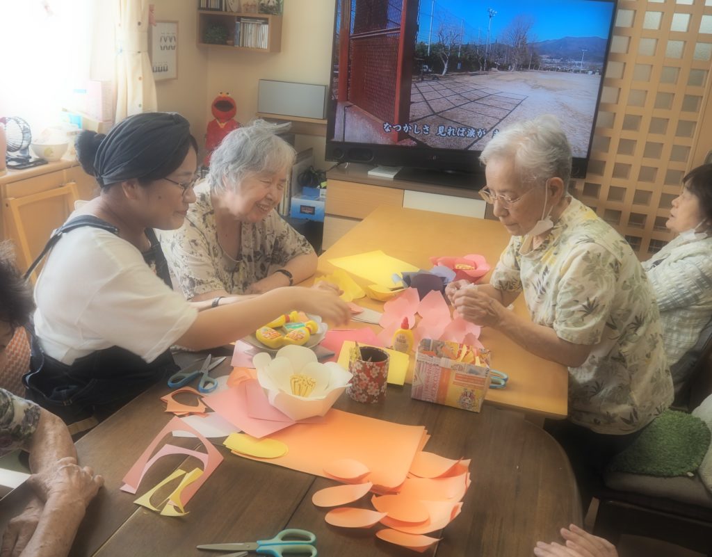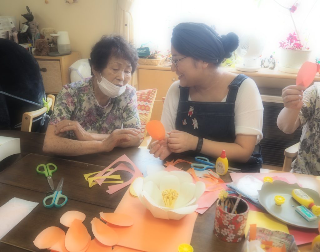 今日は、みなさんと一緒にペーパーフラワーを作りましたよ♪
