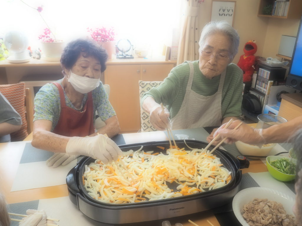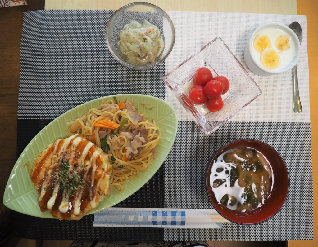 今日のお昼ごはんは、ホットプレートで焼きそば&お好み焼きをしましたよ♪