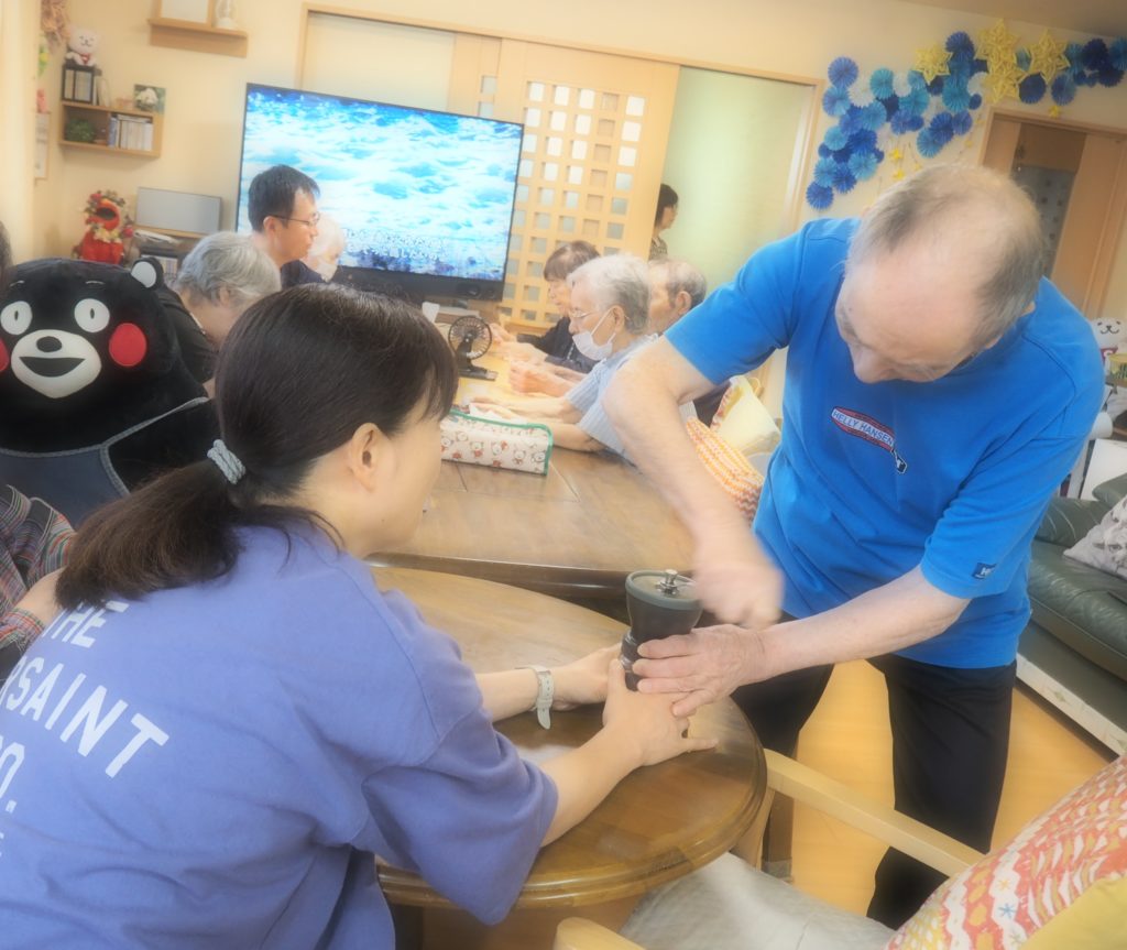 三時のコーヒーは、お客様が挽いて下さいましたよ!!
