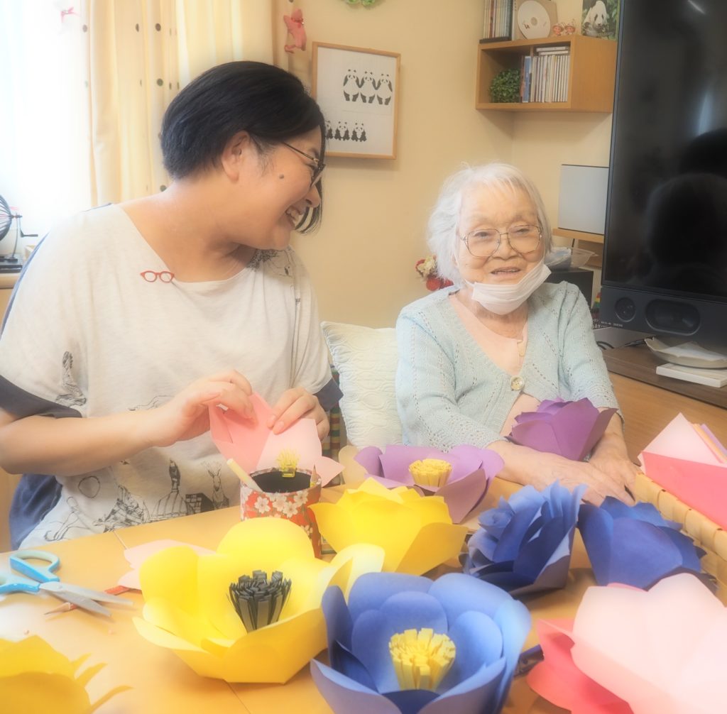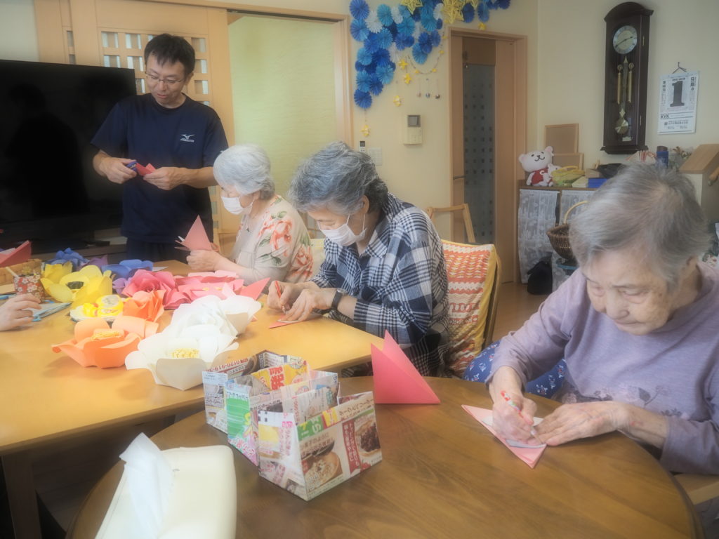 今日は、みなさんとペーパーフラワー作りをしましたよ♪