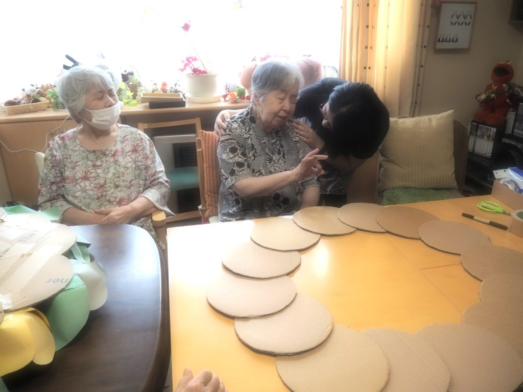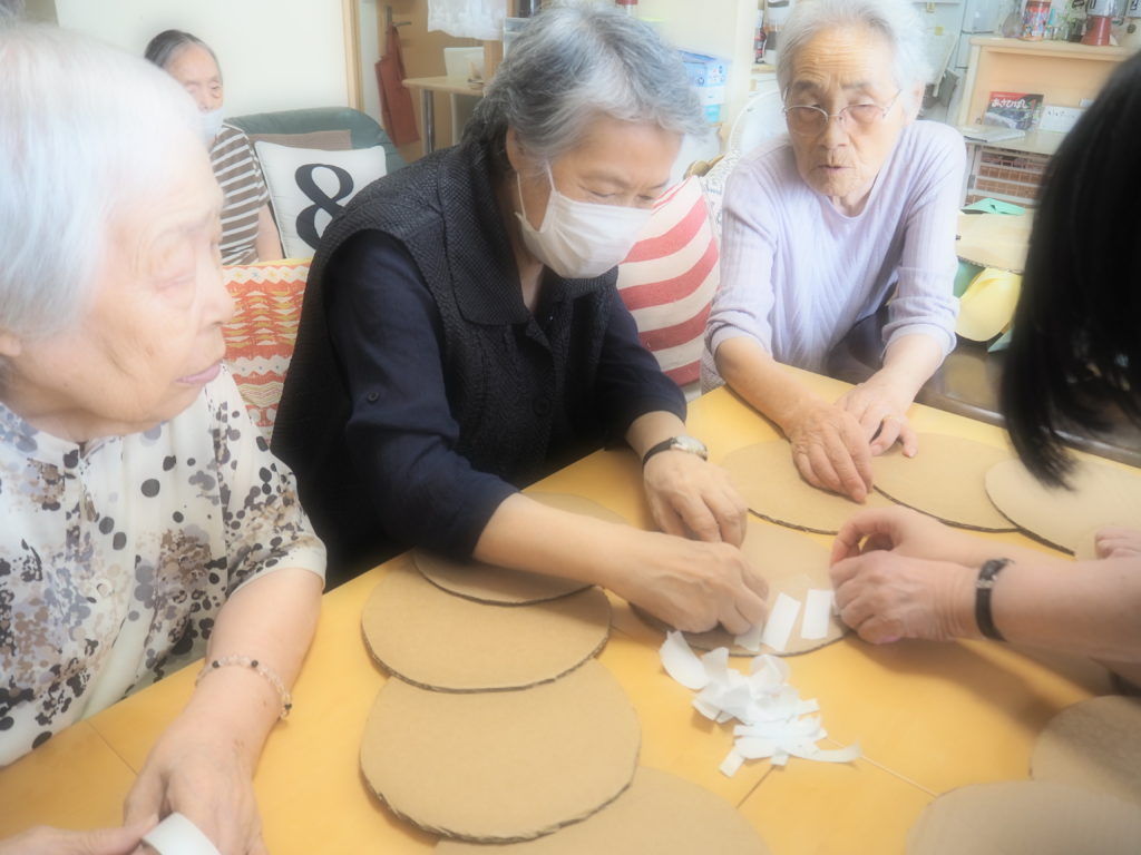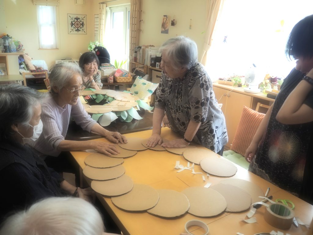 連日みなさんと一緒に作っているペーパーフラワー、