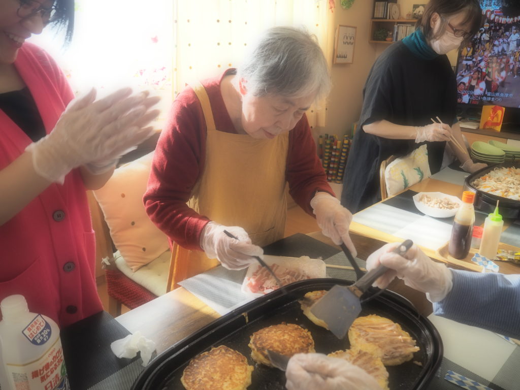 お昼ごはんは、一緒にお好み焼きと焼きそばを作りましょう!!