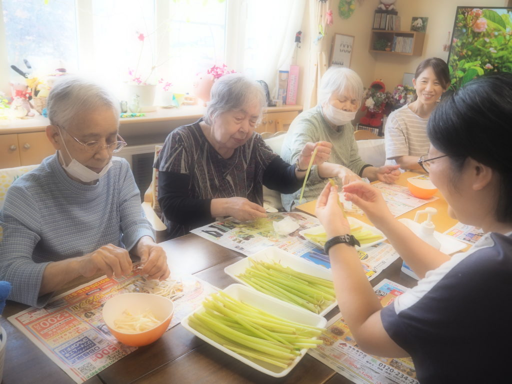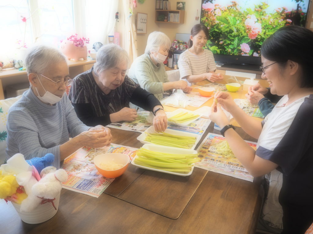 沢山頂いた蕗の皮むきは、みなさんとご一緒に♪