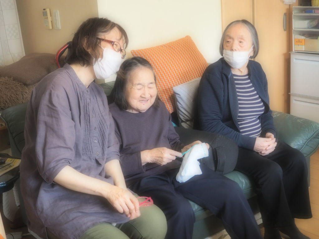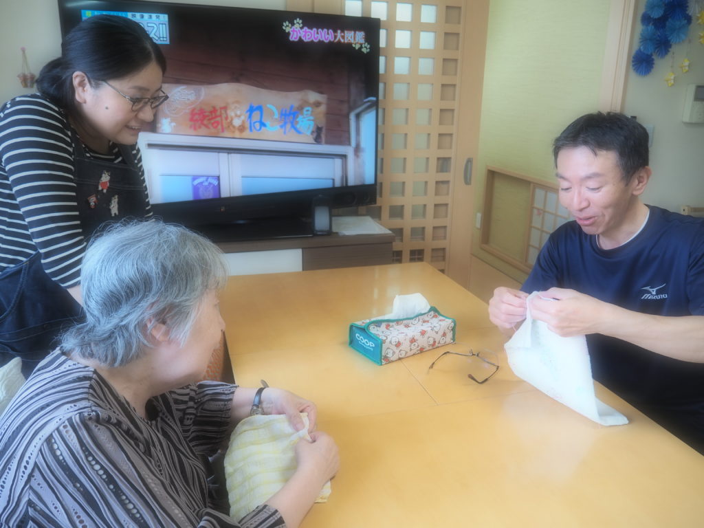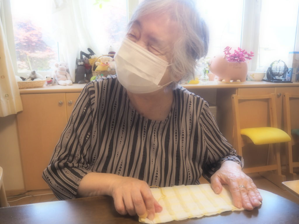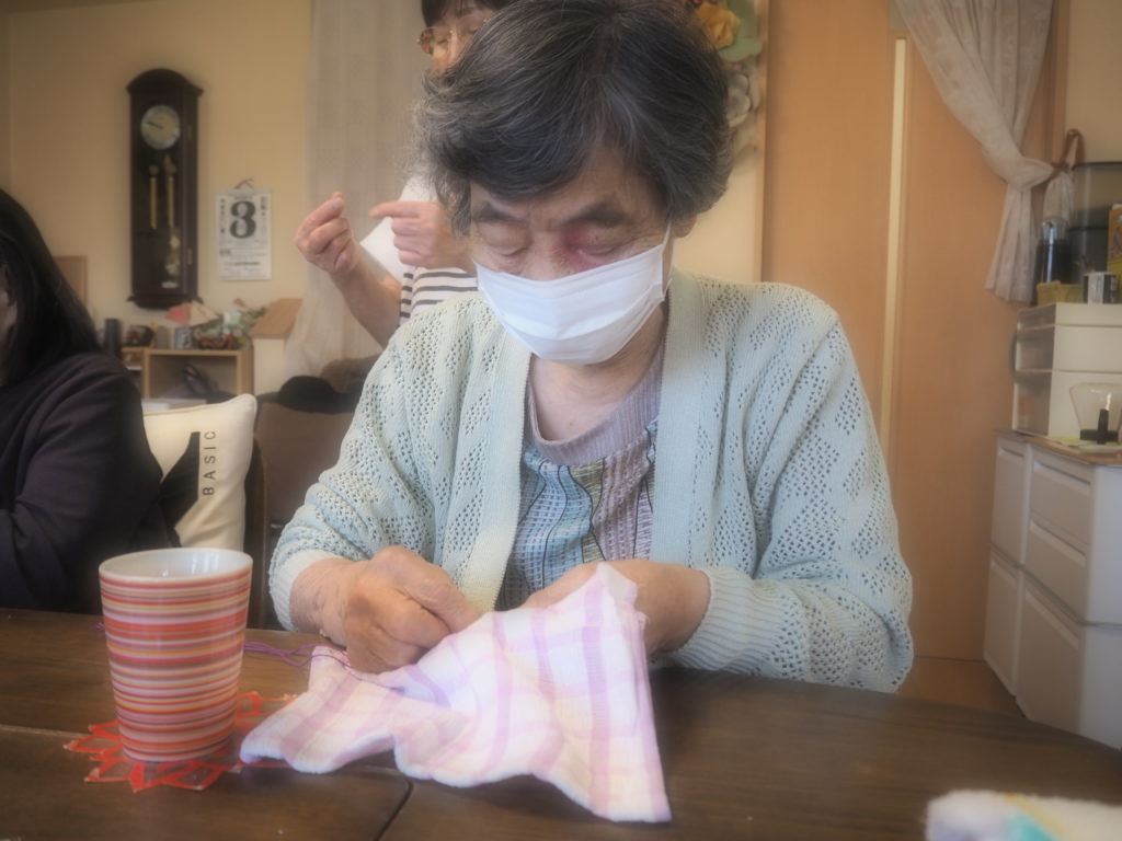 今日は、みなさんと一緒にお布巾作りをしましたよ♪