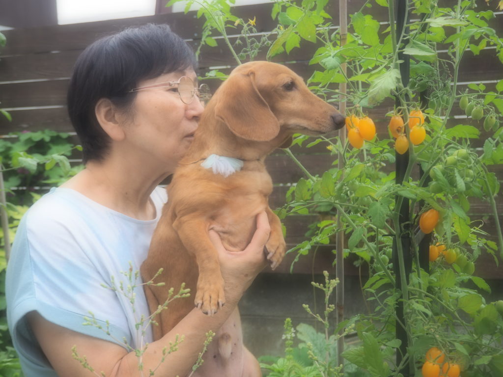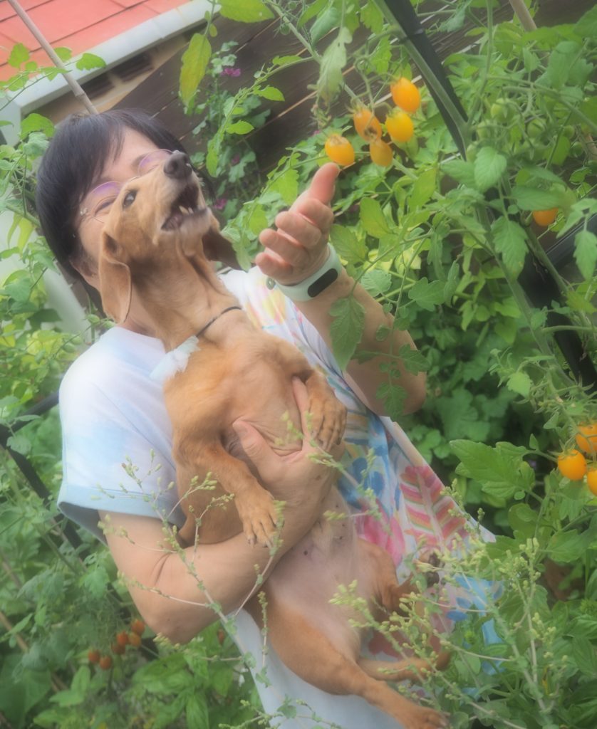 早速、ミニトマトを発見!! 嬉しそうなお客様です♪