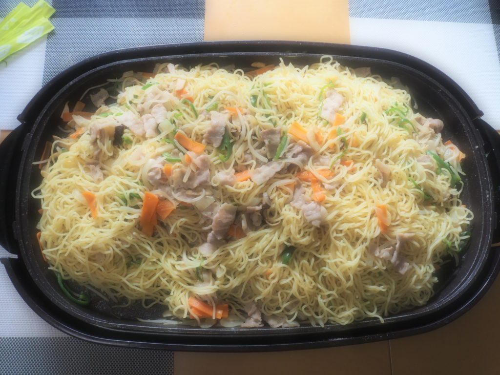 今日のお昼ごはんは、ホットプレートで焼きそば&お好み焼きをしましたよ♪