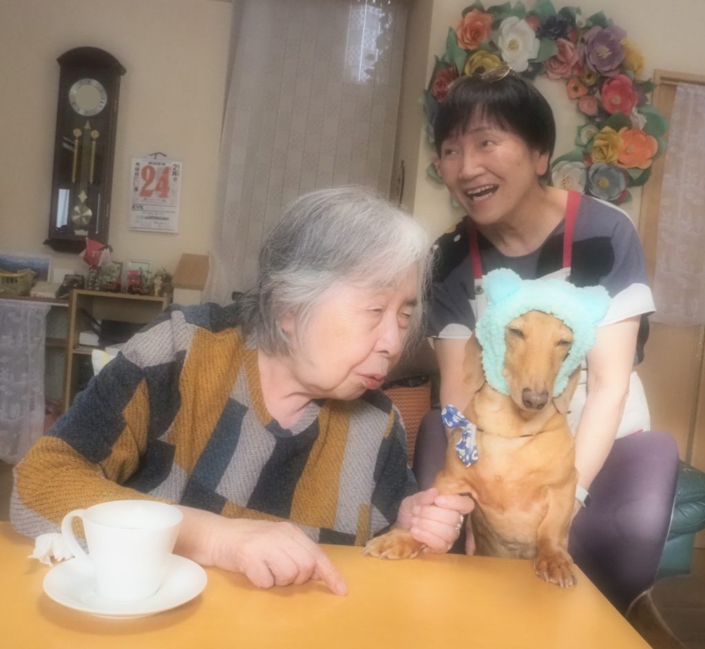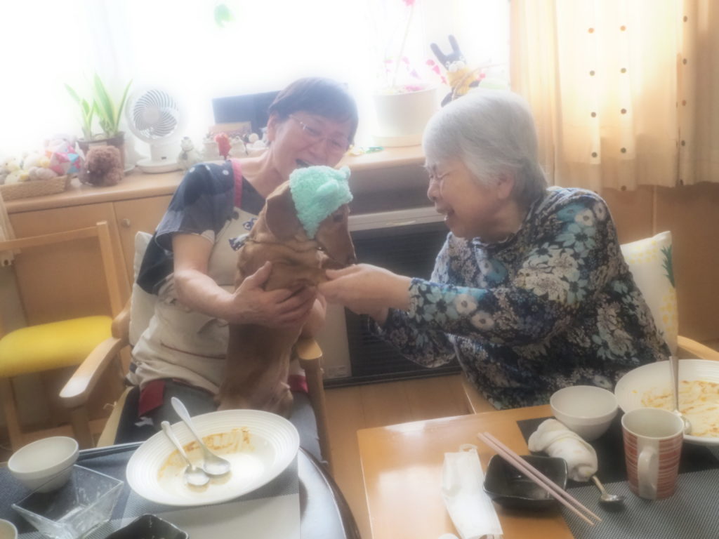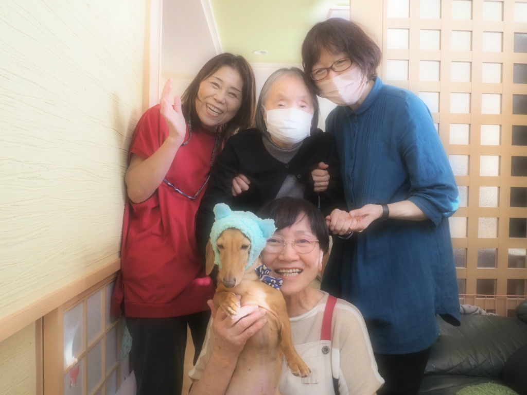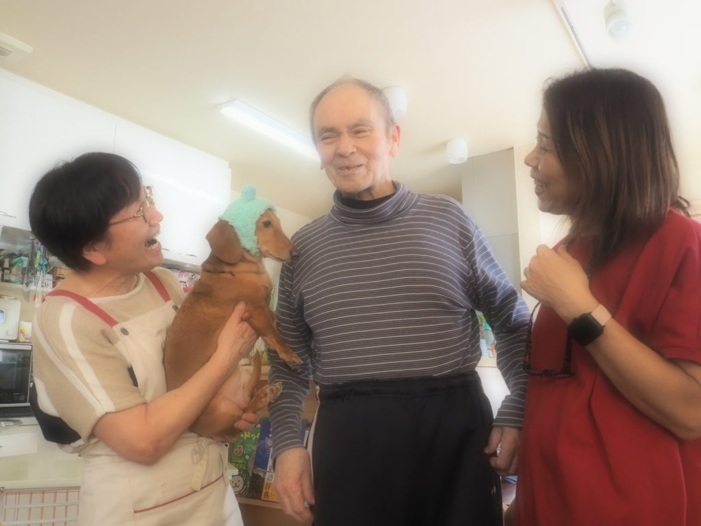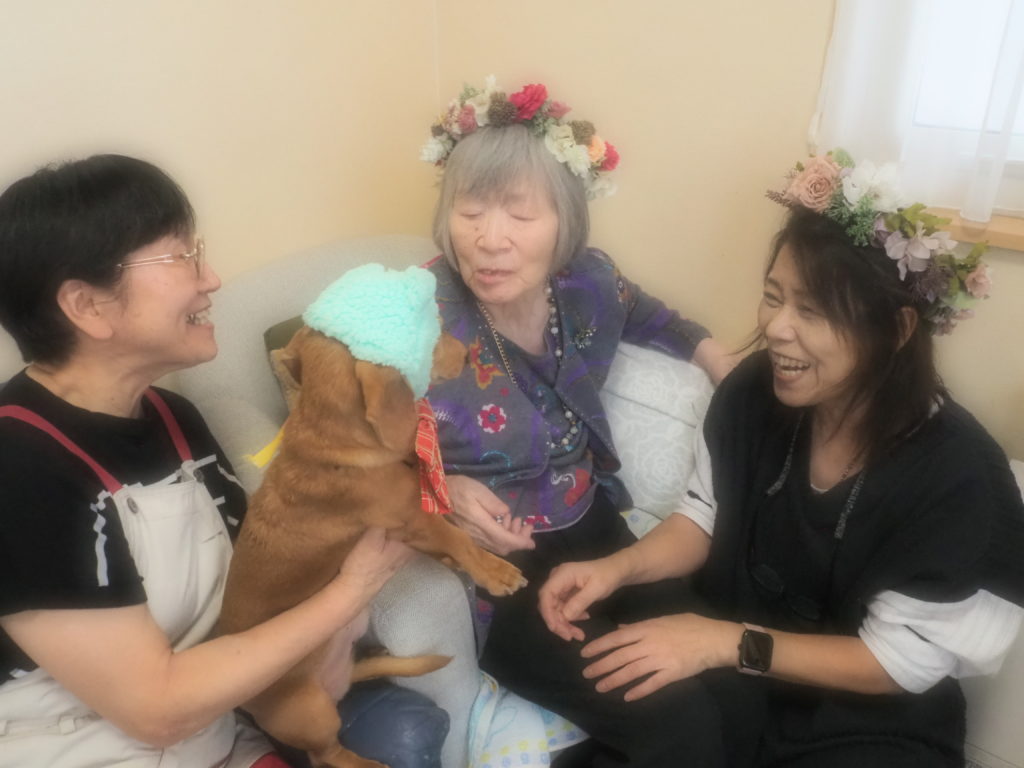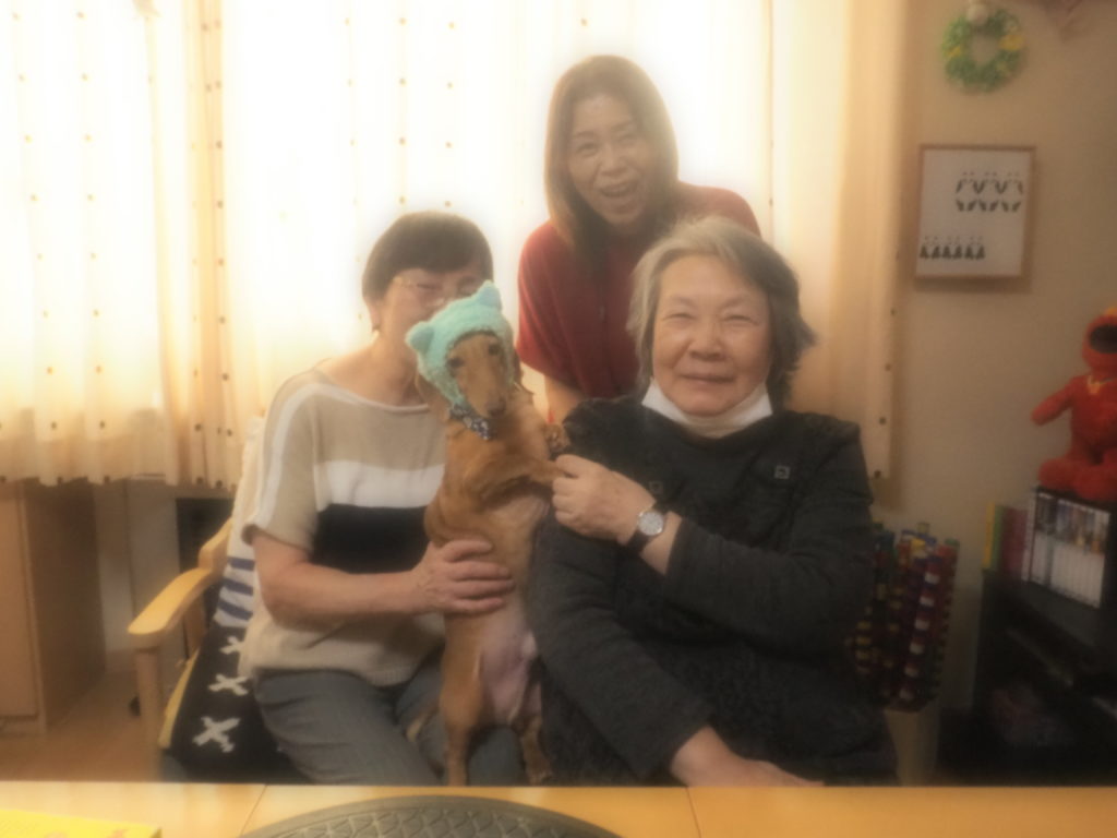 お食事後の団らんには、おしゃれをしたスタッフ犬・けんちゃんも参加させて頂きました♪