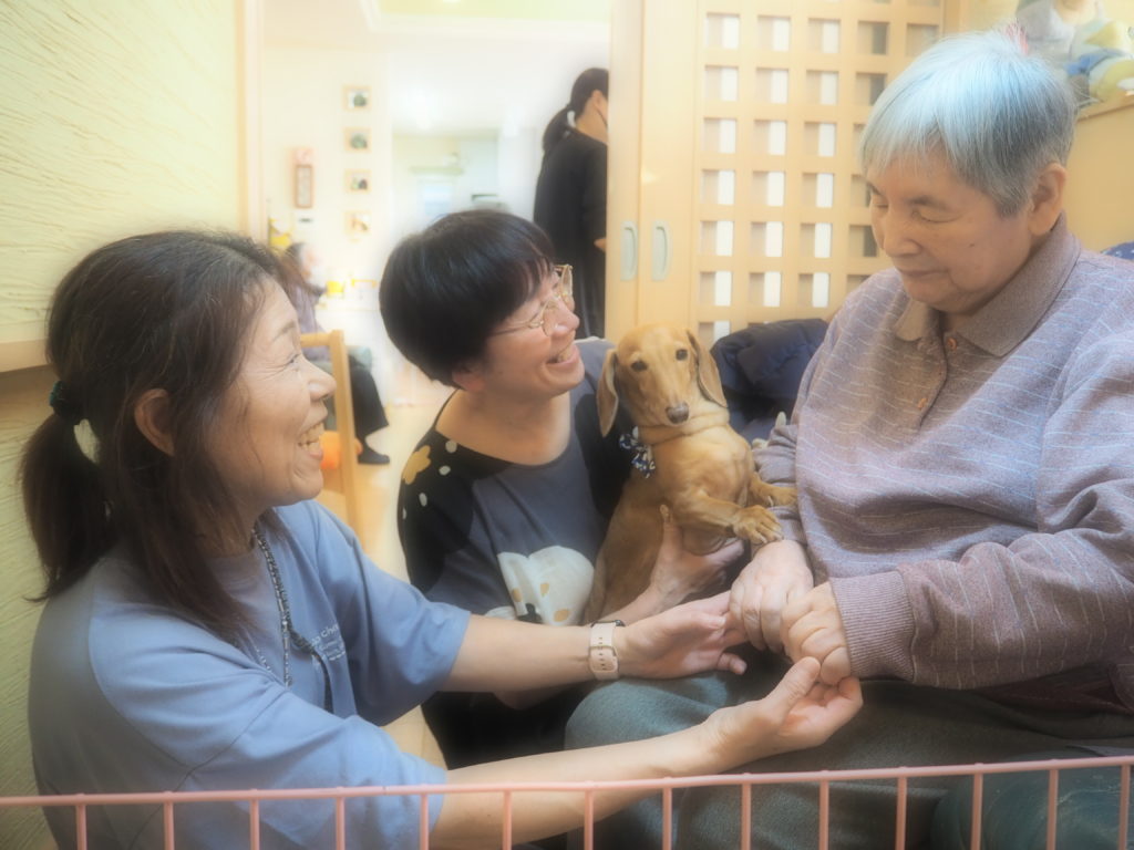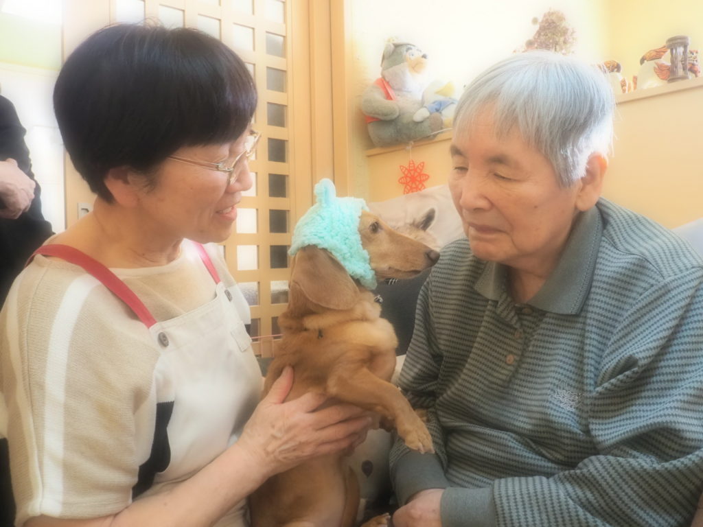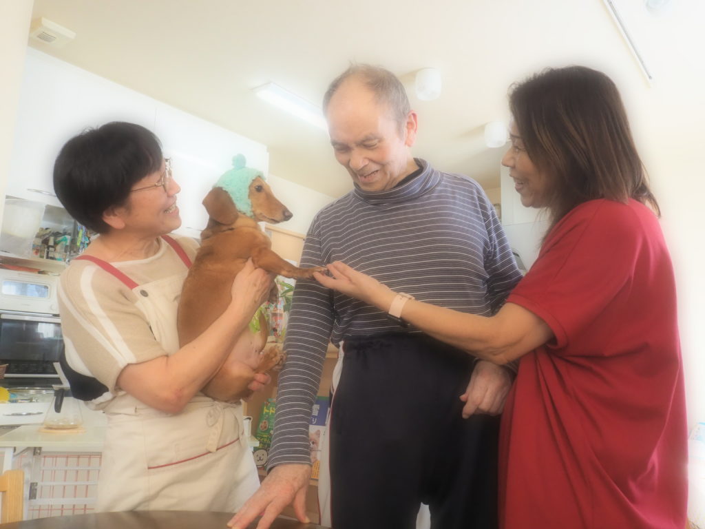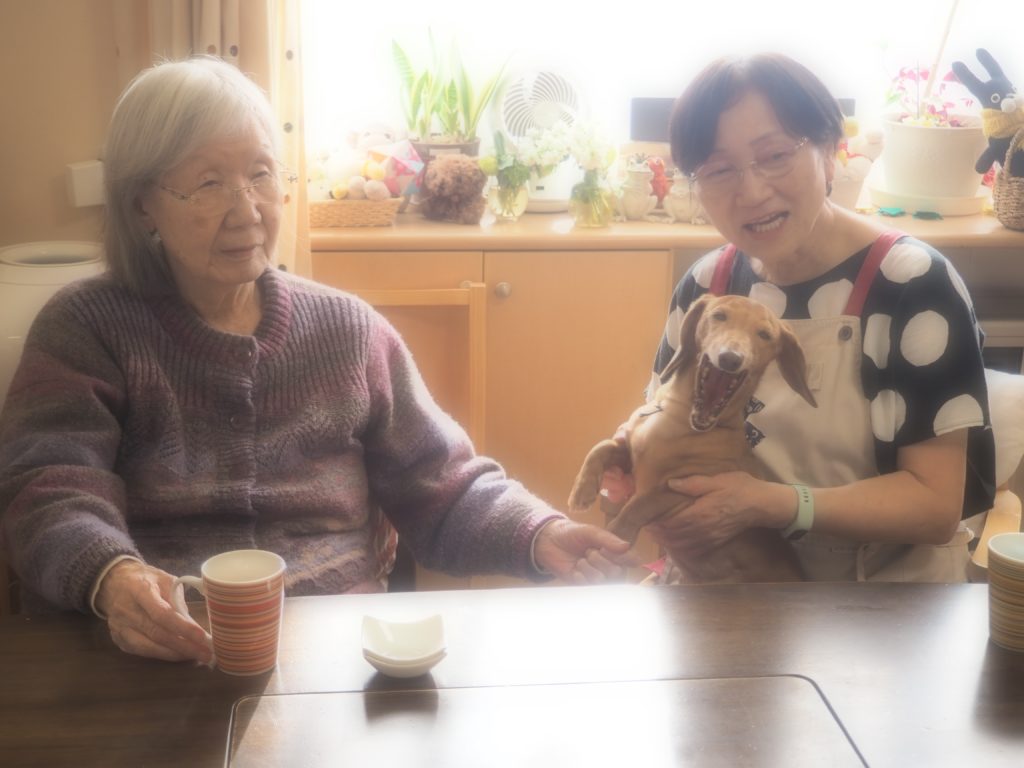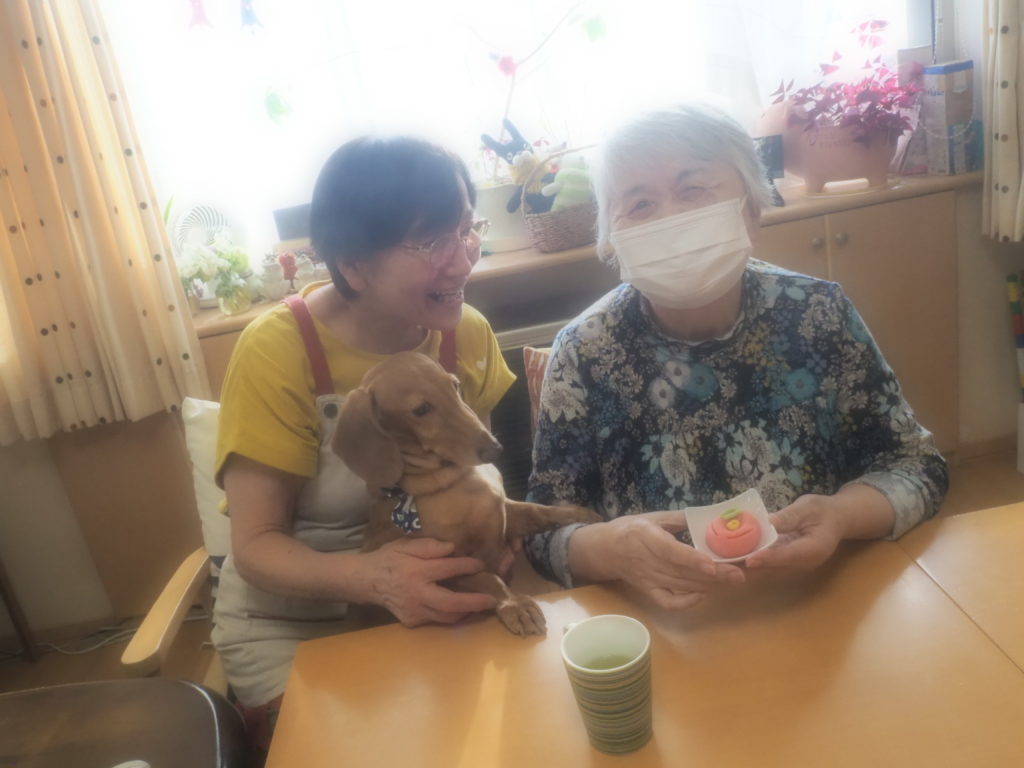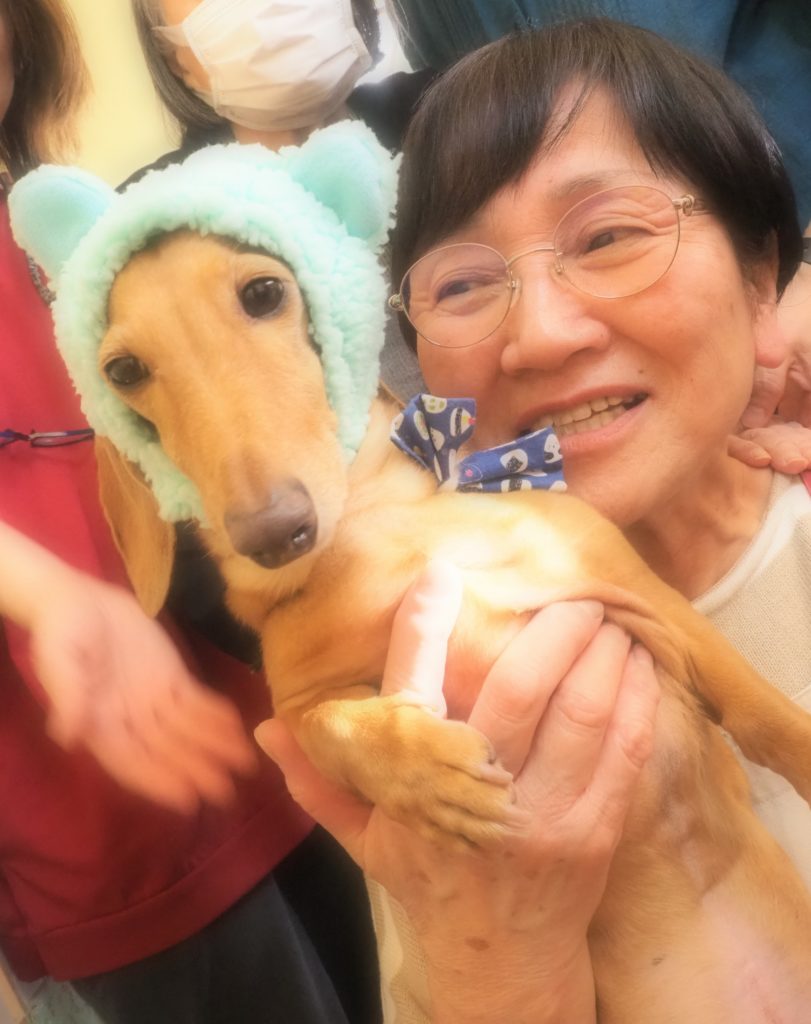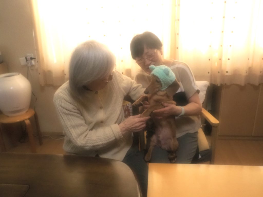 お食事後の団らんには、おしゃれをしたスタッフ犬・けんちゃんも参加させて頂きました♪