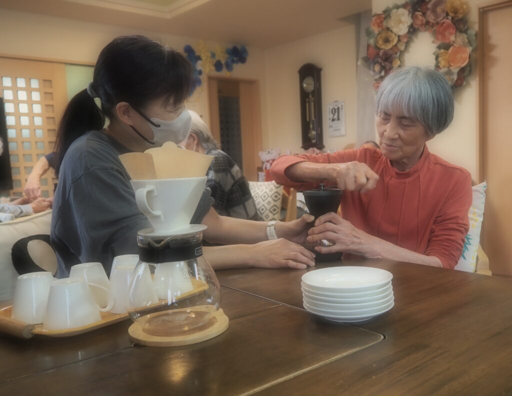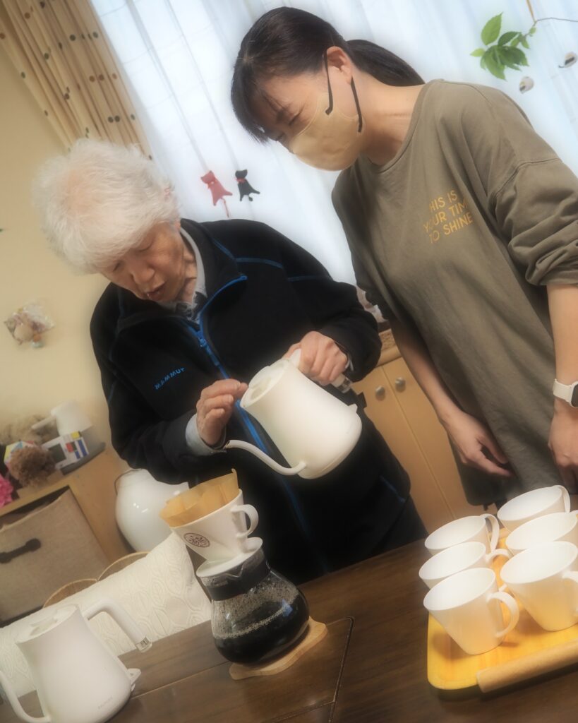 三時のコーヒーの準備も、みなさんで・・・