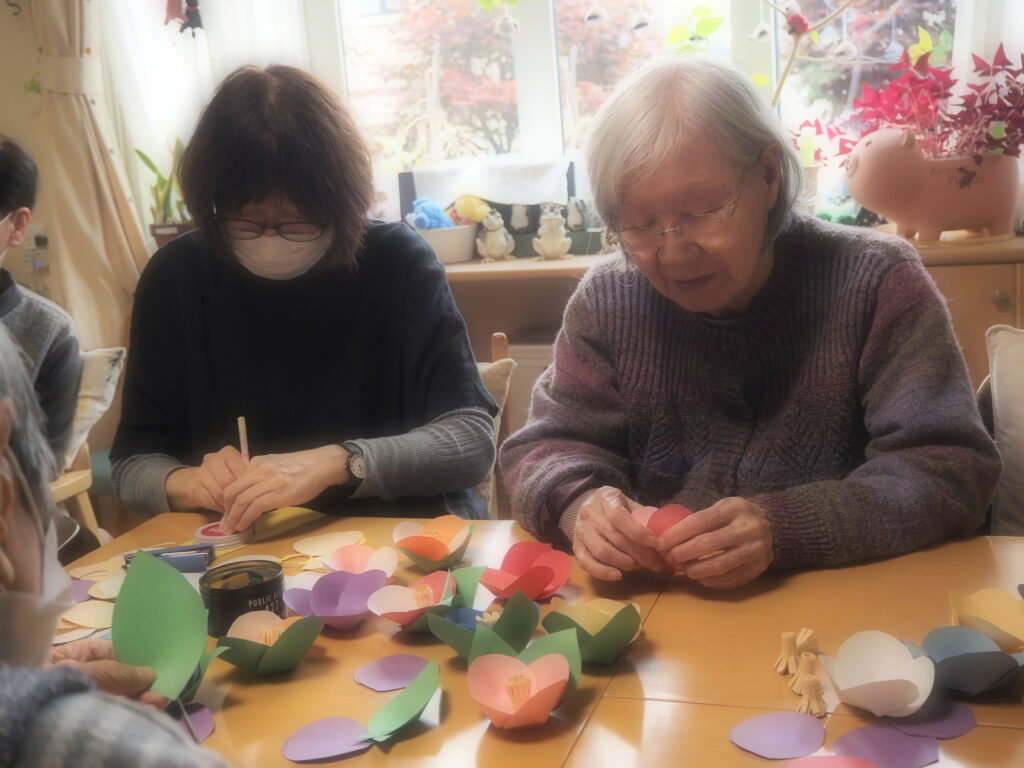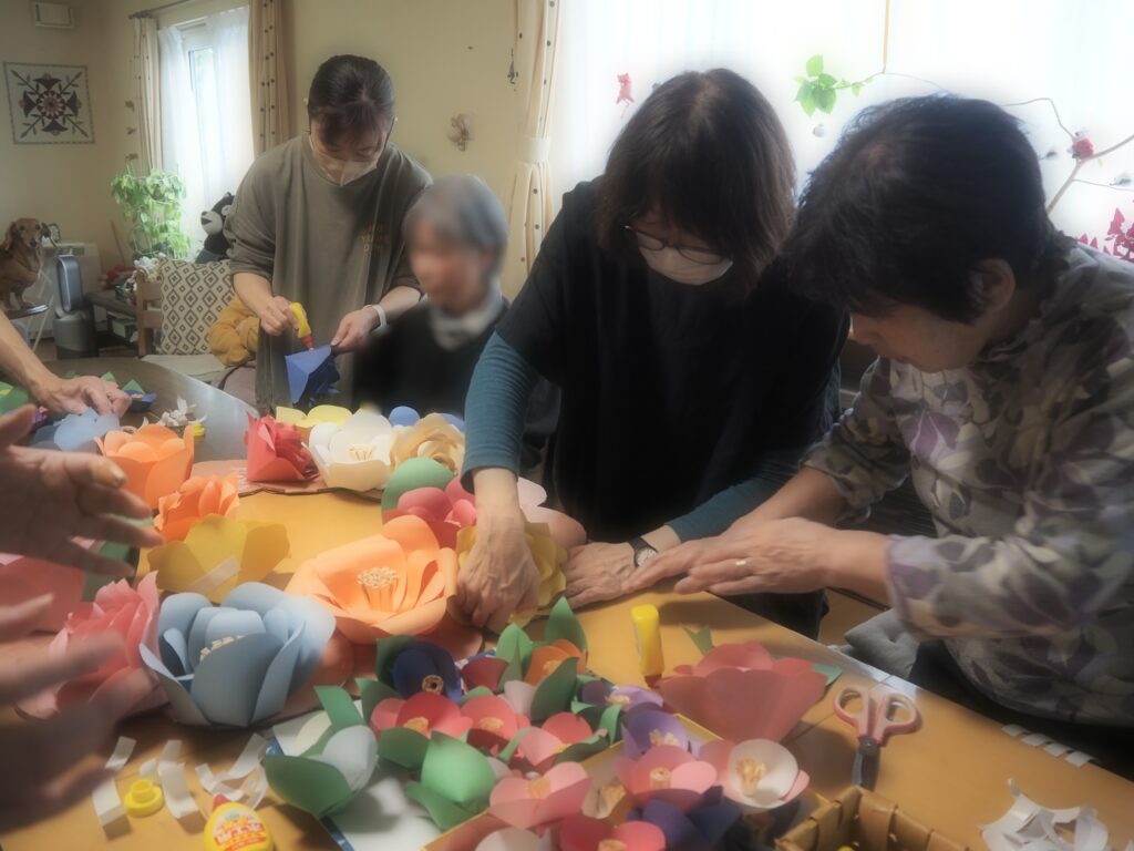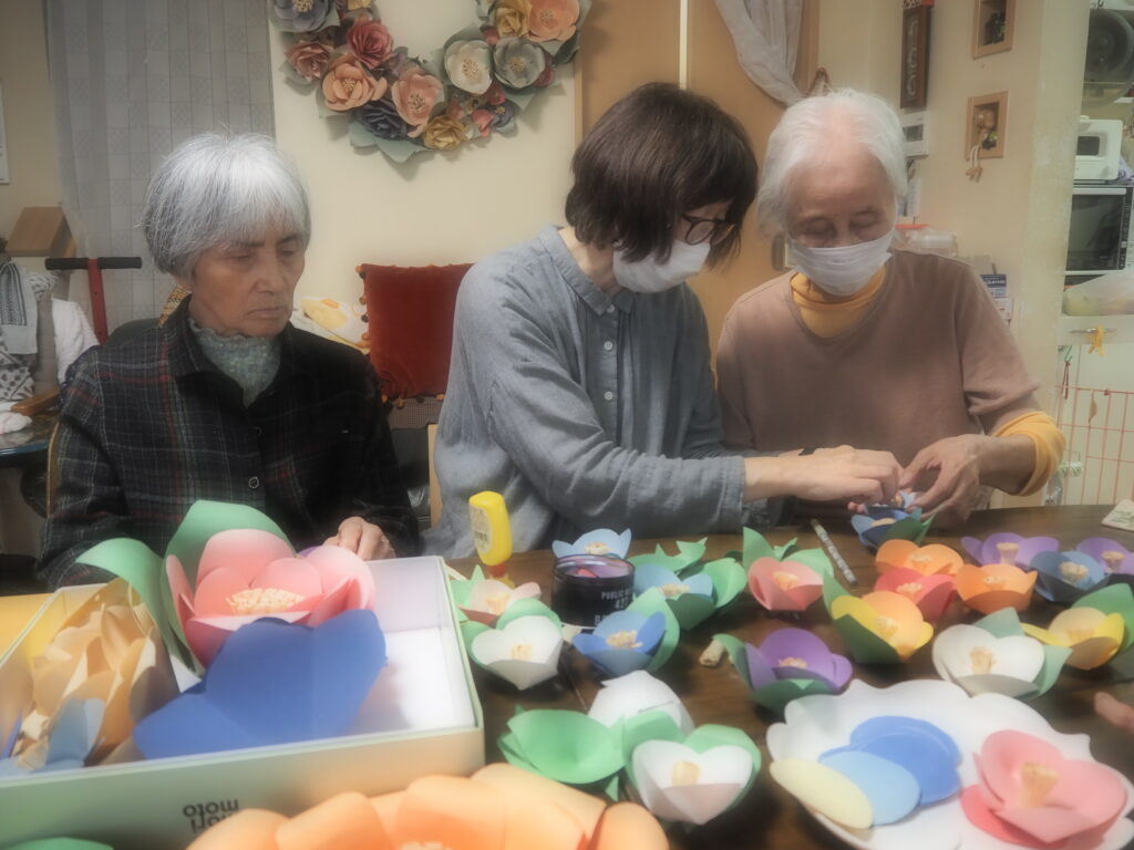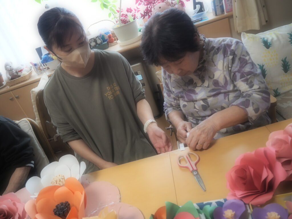 昨日に続いて本日も、ペーパーフラワー作りを楽しまれたみなさん。
