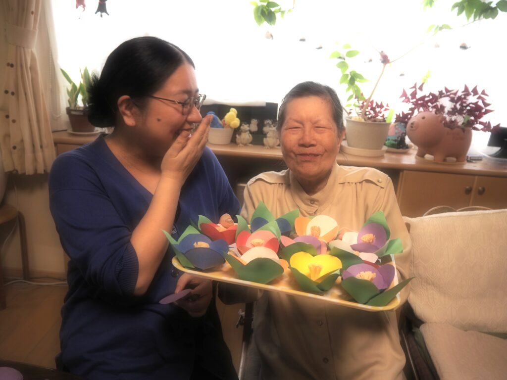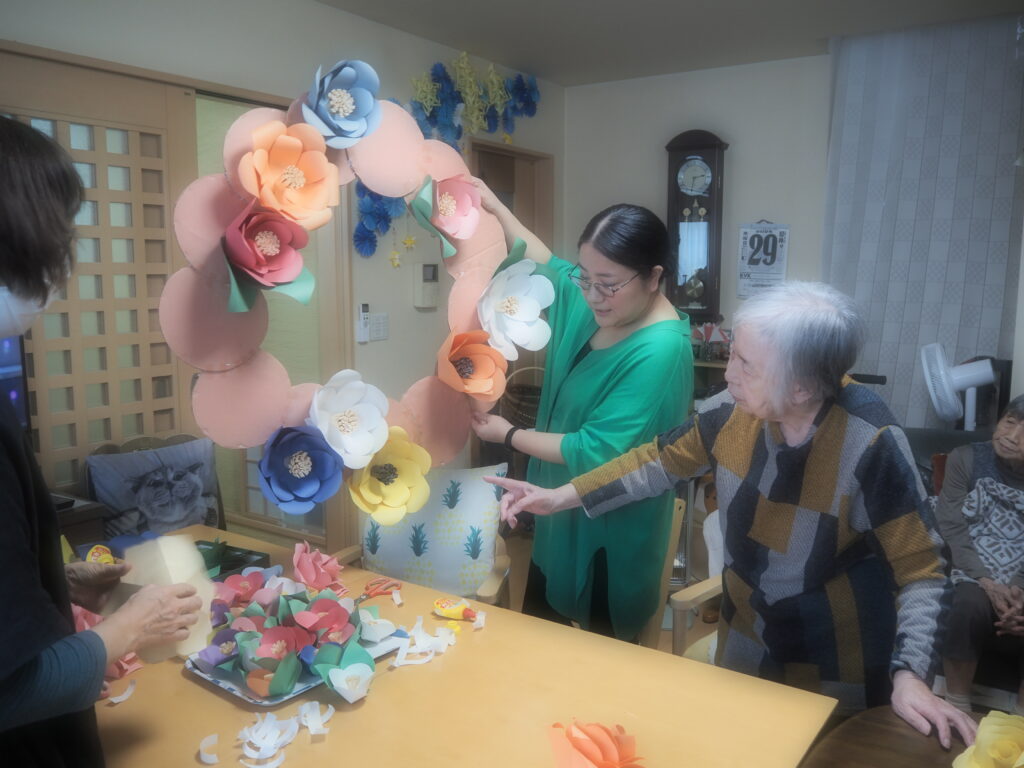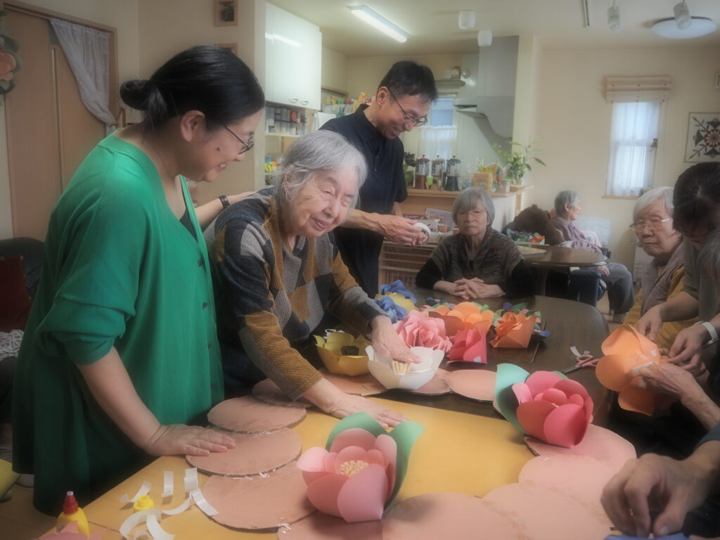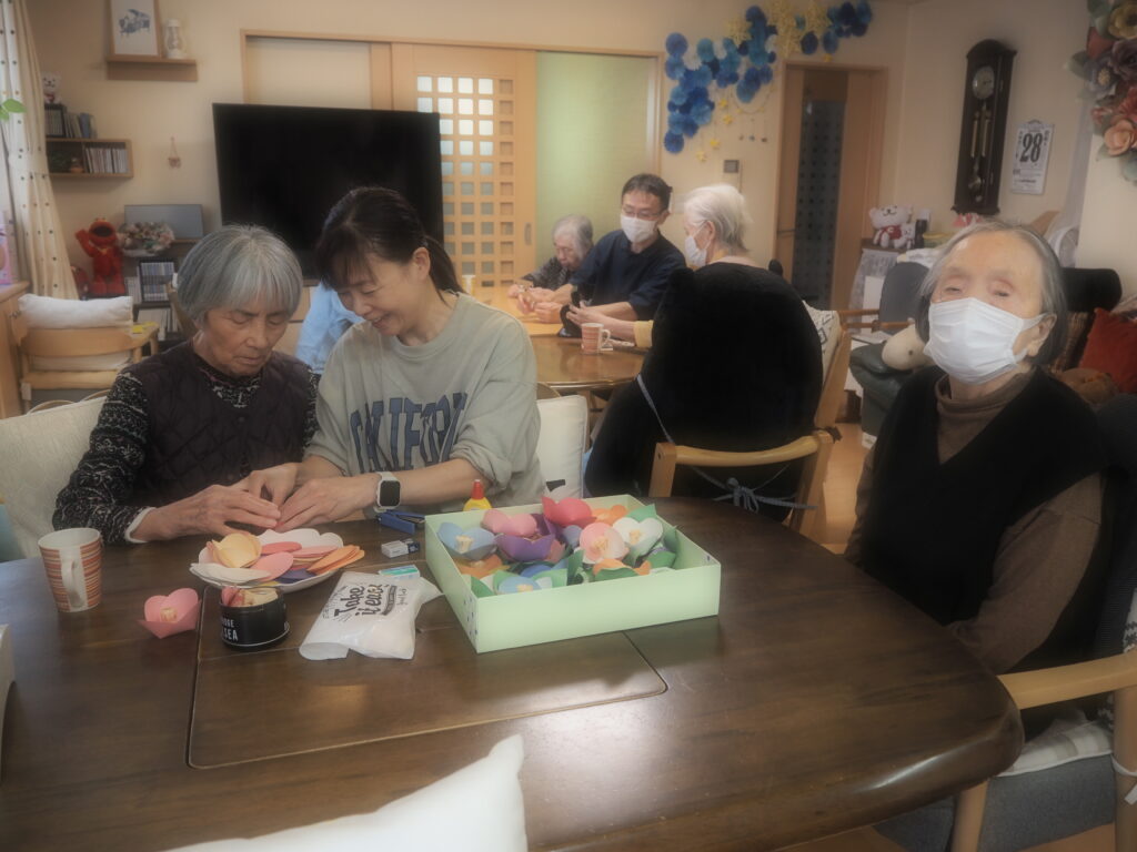 昨日に続いて本日も、ペーパーフラワー作りを楽しまれたみなさん。