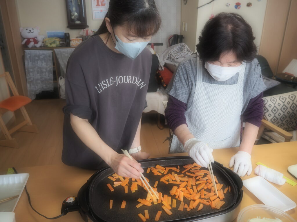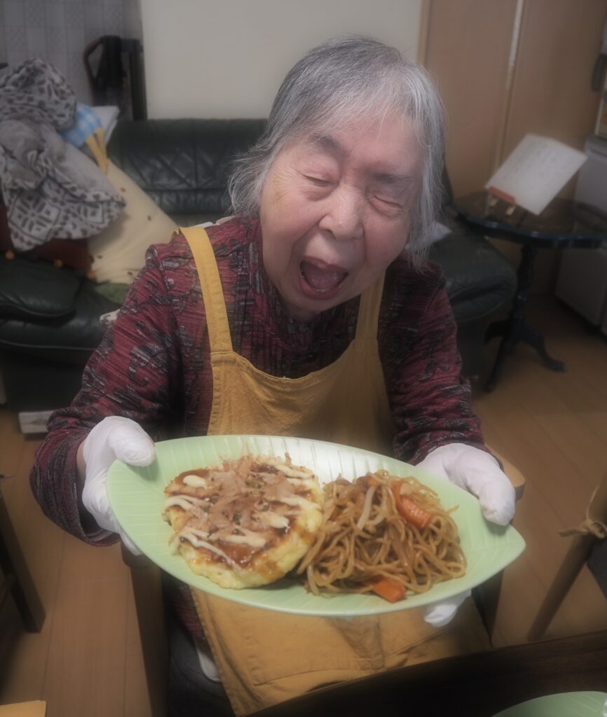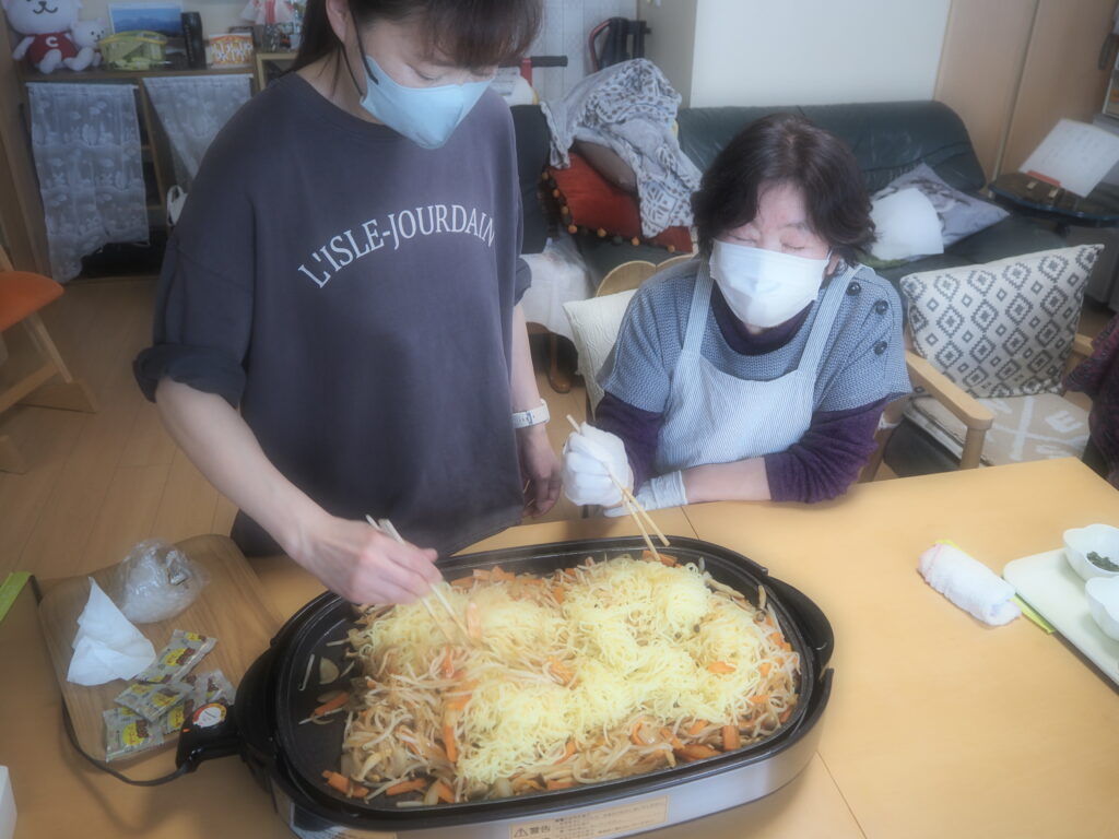 今日のお昼ごはんは、ホットプレートで焼きそば&お好み焼きをしましたよ♪
